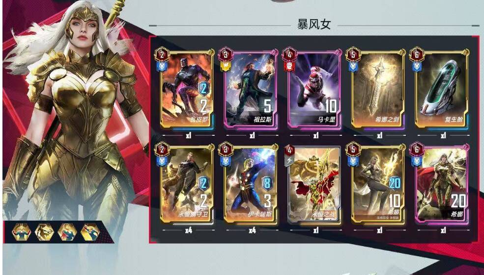 2费:x战警带满,终幕效果猛的yipi,变角色的时候尽量变红卡,有概率有金刚狼,如果4回合终幕成还可以抬人走,野兽工具人