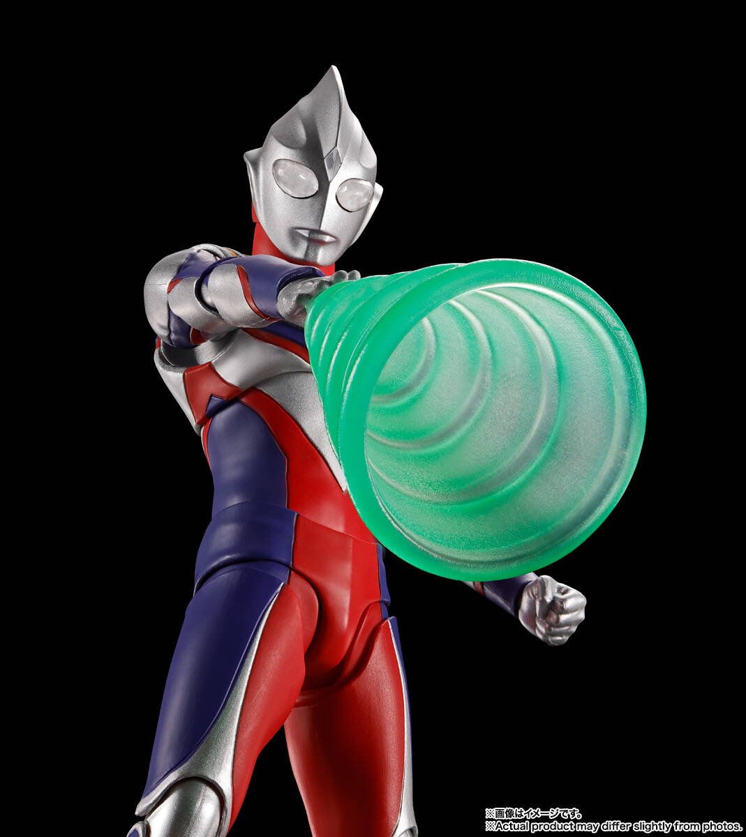 TV本編で使用した様々な光線技を再現できる豊富な新規エフェクトパーツと、目とカラータイマーの集光パーツを新たに搭載。さらに『ウルトラマンティガ』30周年を記念したアニバーサリーロゴ入りの記念台座が付属。