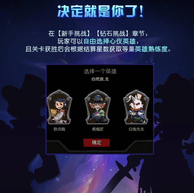 ⚔️英雄随心选:新手 / 钻石挑战章节可自选英雄