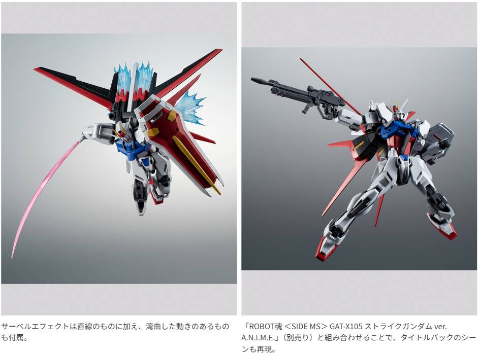 別売りの「ROBOT魂 <SIDE MS> GAT-X105 ストライクガンダム ver. A.N.I.M.E.」に装備可能な、エールストライカーとエフェクトパーツのセットが登場。