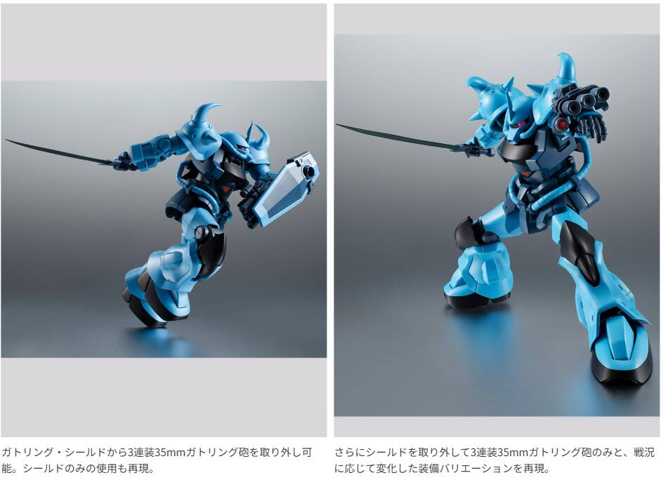 単機で第08MS小隊を窮地に追い込んだ「グフ・カスタム」が、代名詞であるガトリング・シールドや各種武装を携えてver. A.N.I.M.E.に登場!