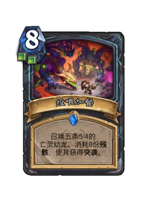 召唤五条5/4的亡灵幼龙。消耗8份残骸,使其获得突袭。