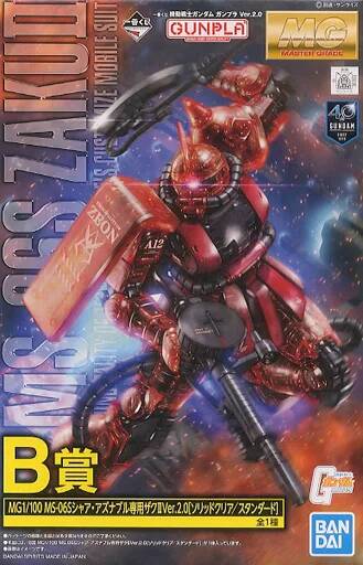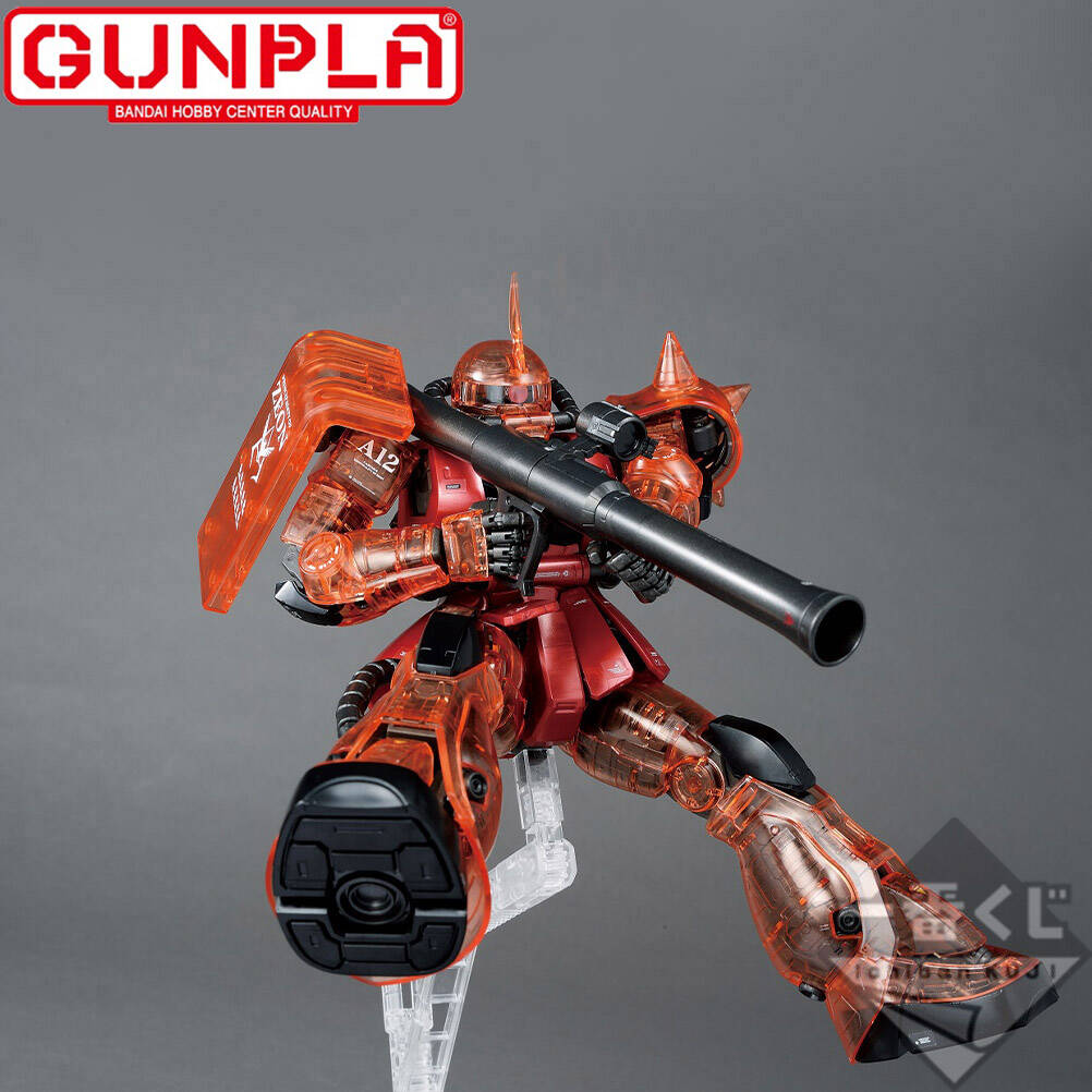 マスターグレード、MS-06Sシャア・アズナブル専用ザクⅡVer.2.0が、一番くじオリジナルカラーでラインナップ。最新フォーマットのガンプラがクリアパーツを採用した特別仕様で登場です。