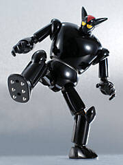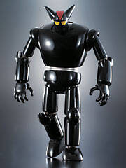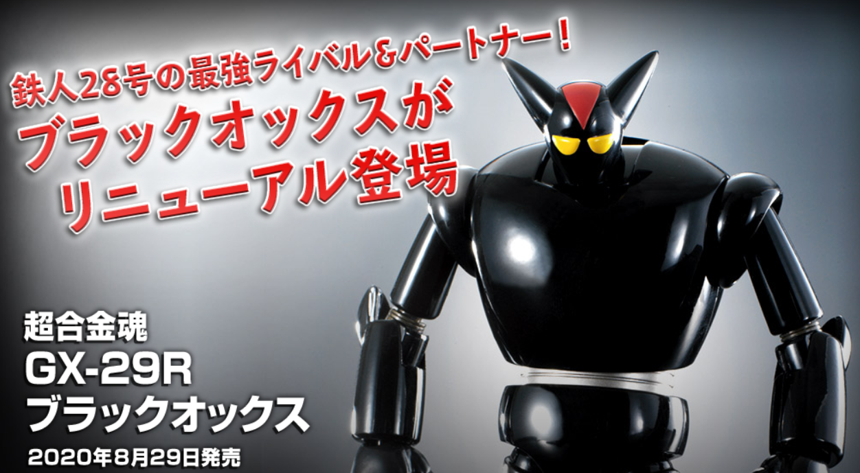 鉄人28号と人気を二分するライバルロボット「ブラックオックス」がついに初超合金化!シンプルながら独特な魅力を持った漆黒のボディをダイキャストで再現。手に取ると改めてそのデザインの奥深さを実感できます。目の発光や足裏のスパイク伸縮といったギミックを内蔵。もちろん不乱拳博士のフィギュアも付属。さらに、別売りの鉄人28号(ブルーメタリックバージョン)とあわせて楽しめるギミックを内蔵。 鉄人28号(別売り)とあわせて対決シーンを再現しよう!