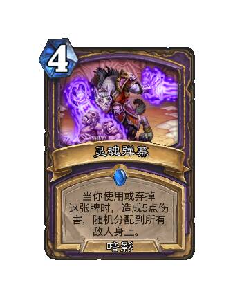 - 新:[4费] 当你使用或弃掉这张牌时,造成5点伤害,随机分配到所有敌人身上。