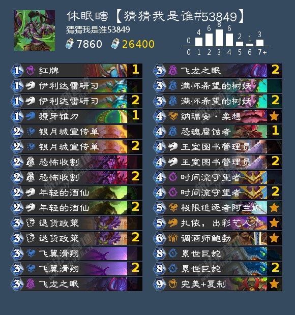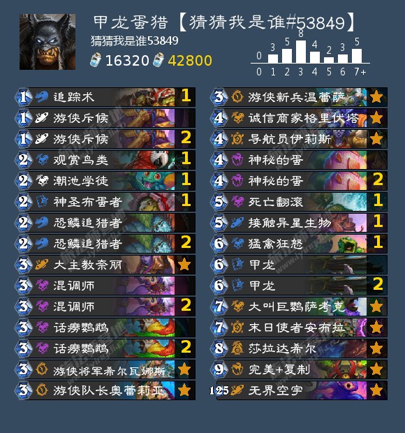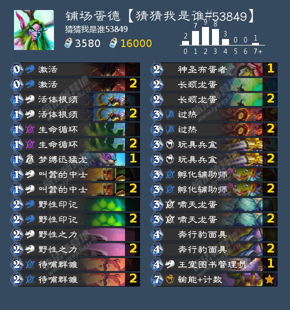 说明:也算是设计师钦点的德鲁伊专属蛋+铺场体系,属于快攻,本身趣味性一般,没玩过这个体系的可以尝新。