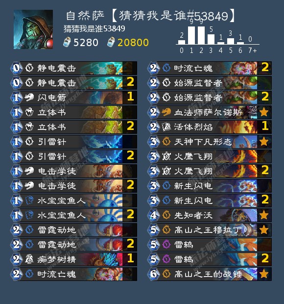 说明:自然法术体系也算是这个版本设计师钦点的套路了,主要通过各种自然法术+法强随从+可以配合自然法术的新版本随从,实现超展开或者高额伤害的combo,后期还有先知者沃单刷法术,没玩过的可以试试。