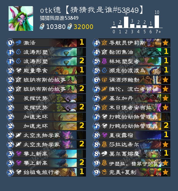 说明:简而言之就是地标体系和星舰体系的结合,德鲁伊的星舰体系可玩之处还是挺多的,因为有双倍法术和随机衍生,另外德鲁伊的奇闻,强化法术地标之后也是双倍发动,很契合德鲁伊的星舰效果。