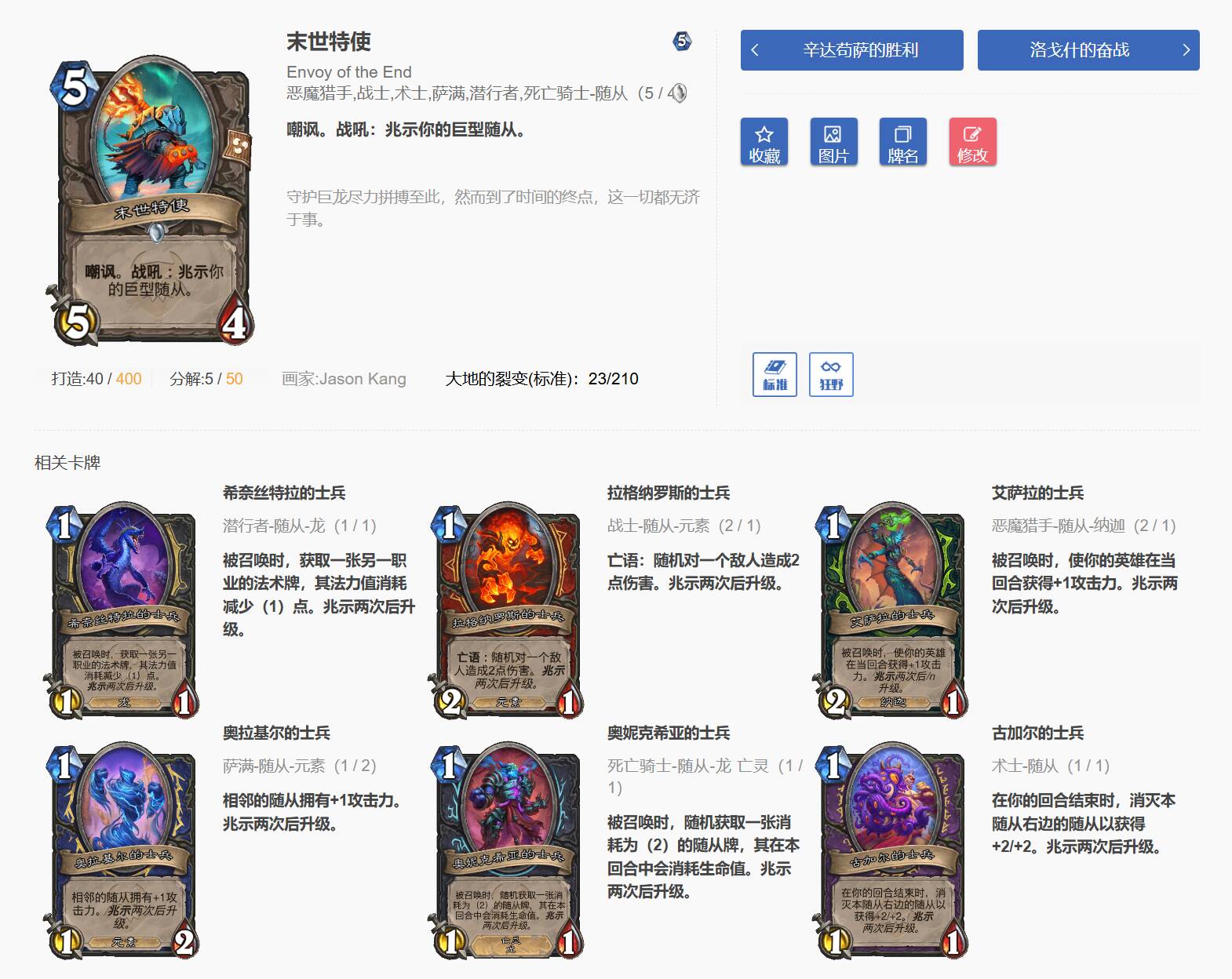 其中末世特使奥卓克希昂灭世者死亡之翼是兆示多职业卡牌(贼、战、瞎、萨、DK、术),并不在中立系列。