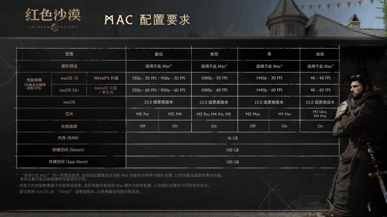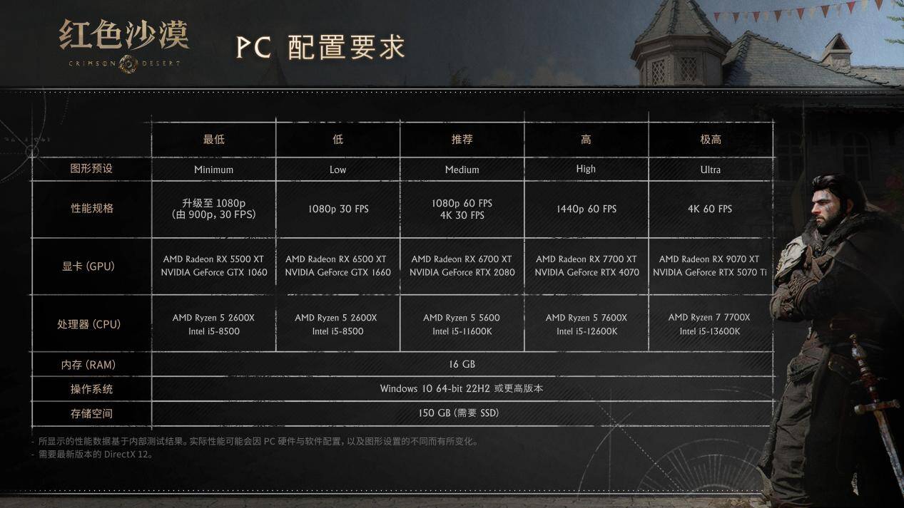 Pearl Abyss 今日正式公开了旗下即将推出的开放世界动作冒险大作《红色沙漠》的 PC、主机及 Mac 性能配置要求。该作将于 3 月 20 日在全球范围同步发售。