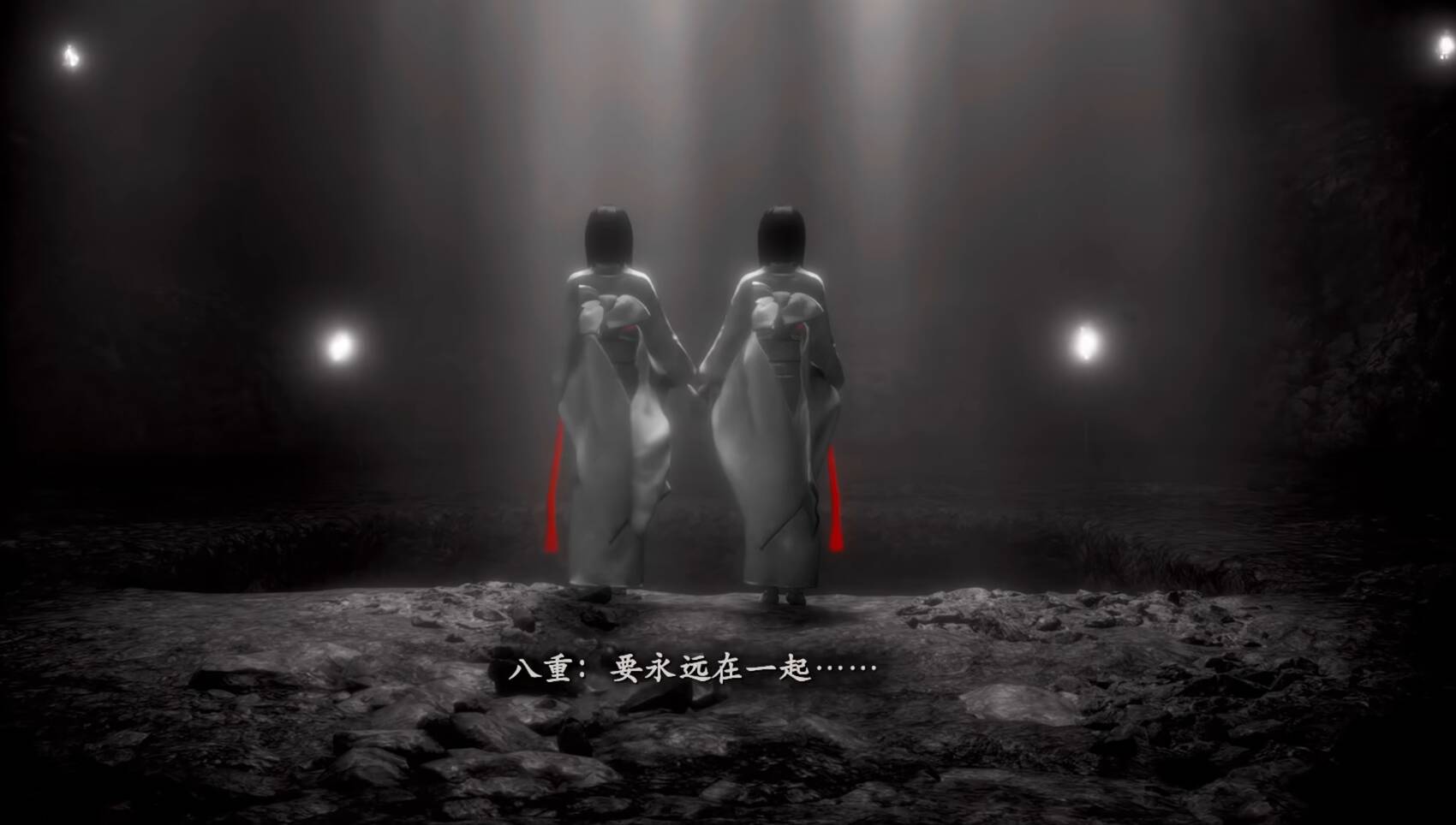 数十年后,天仓家的双子澪和茧,跟着红蝶的指引,误入了这片从地图上消失的村落。先出生的茧是妹妹,后出生的澪是姐姐,她们和当年的黑泽姐妹有着相似的容貌,也有着同样深到骨子里的亲情。小时候茧为了追跑在前面的澪,摔下山崖伤了腿,从此便寸步不离地跟着澪,对她有着近乎偏执的依赖。她最怕的事情,从来都不是村子里的怨灵,而是被澪丢下,就像当年纱重被八重丢下一样。