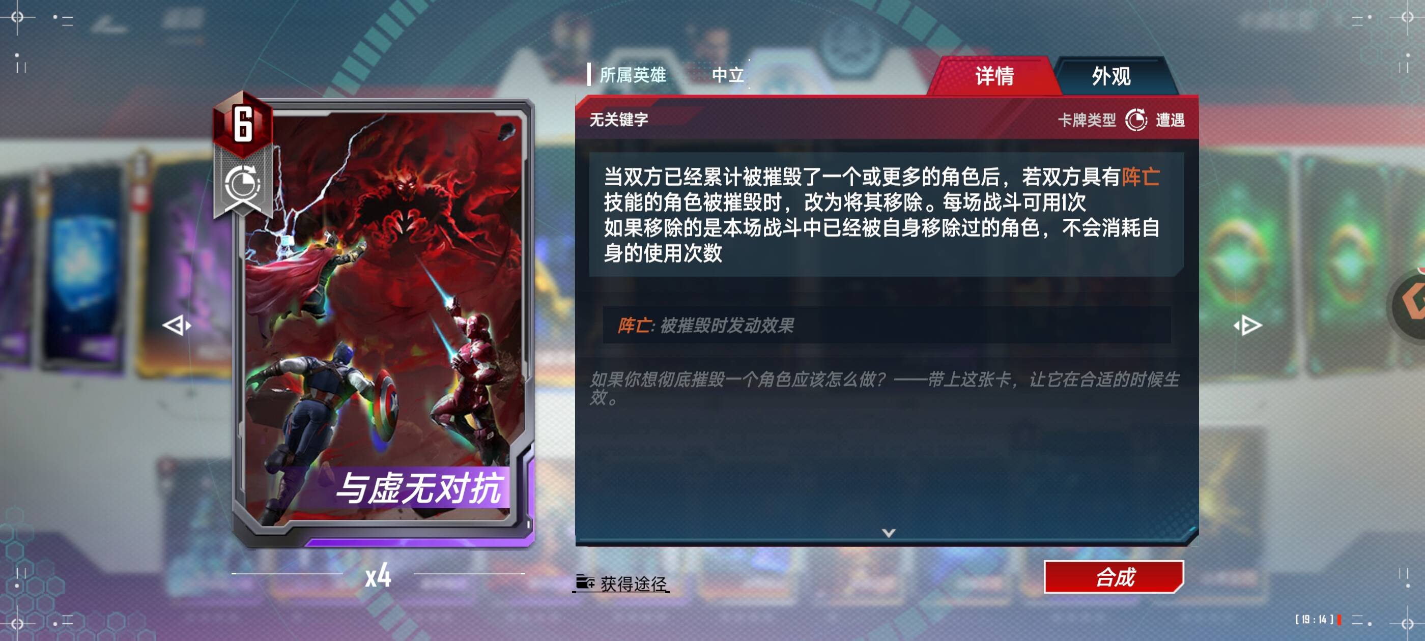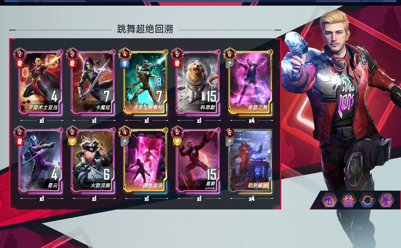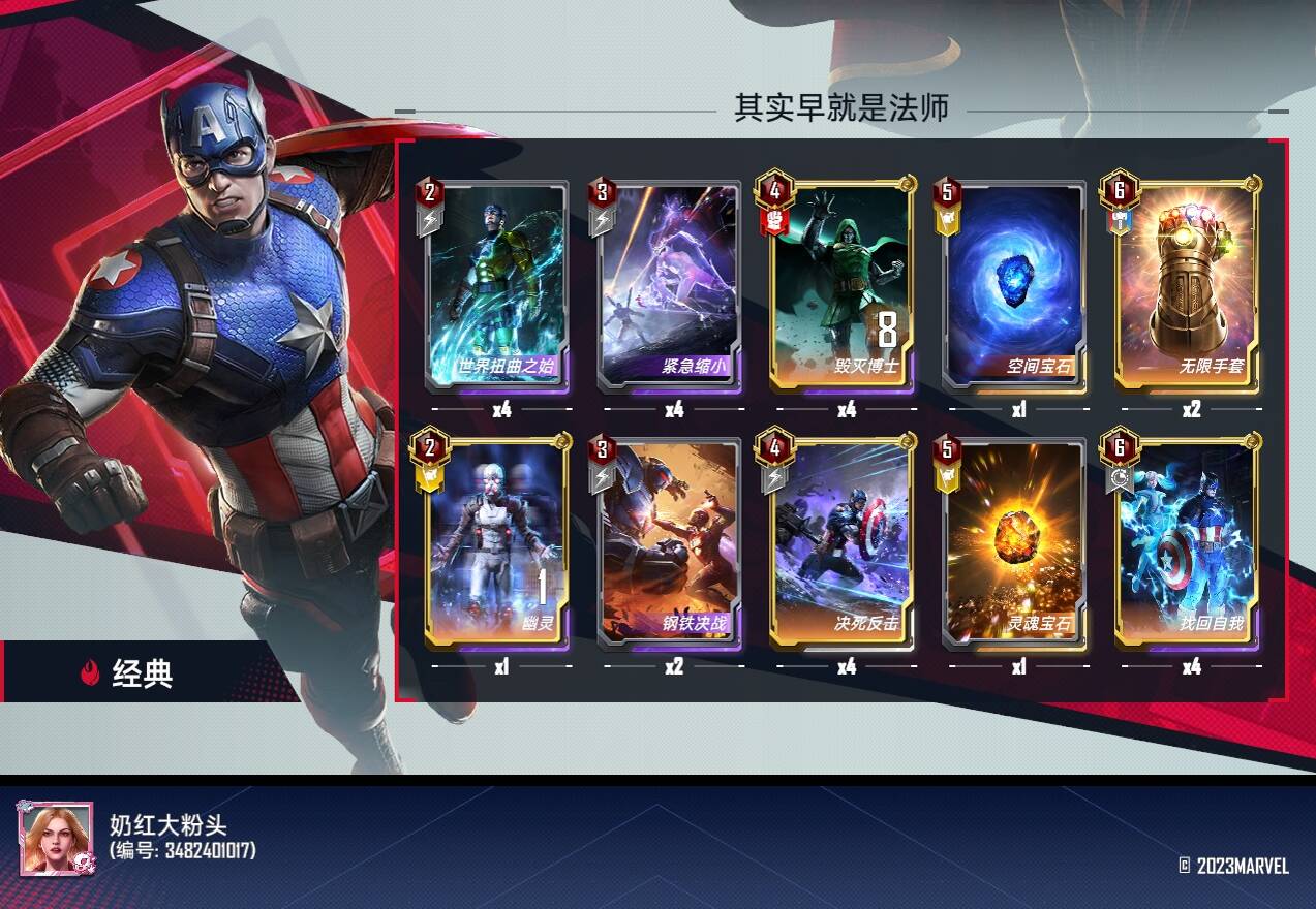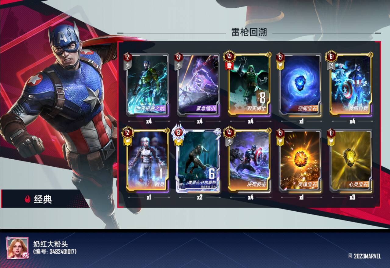 六费:无限手套和找回自我,无限手套可以用于还没成型前拼一波稳血,可替换心灵宝石夜巡使用,内战可以给黄色角色佩戴拉对面怪,找回自我(核心遭遇组件) 可以有效针对低本核心卡组,如果环境中套娃阵亡效果的卡组多可以替换为对抗虚无
