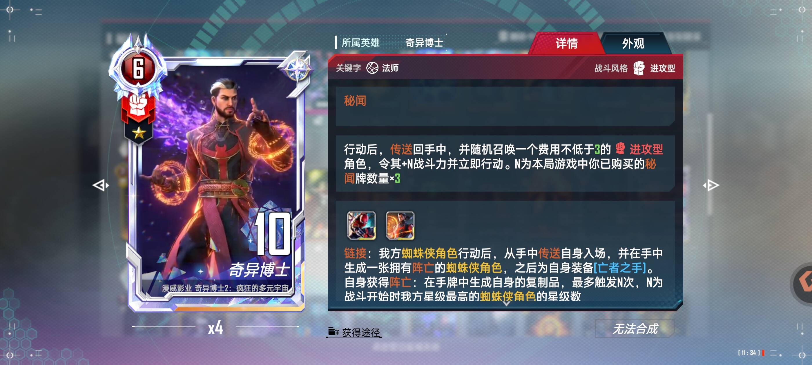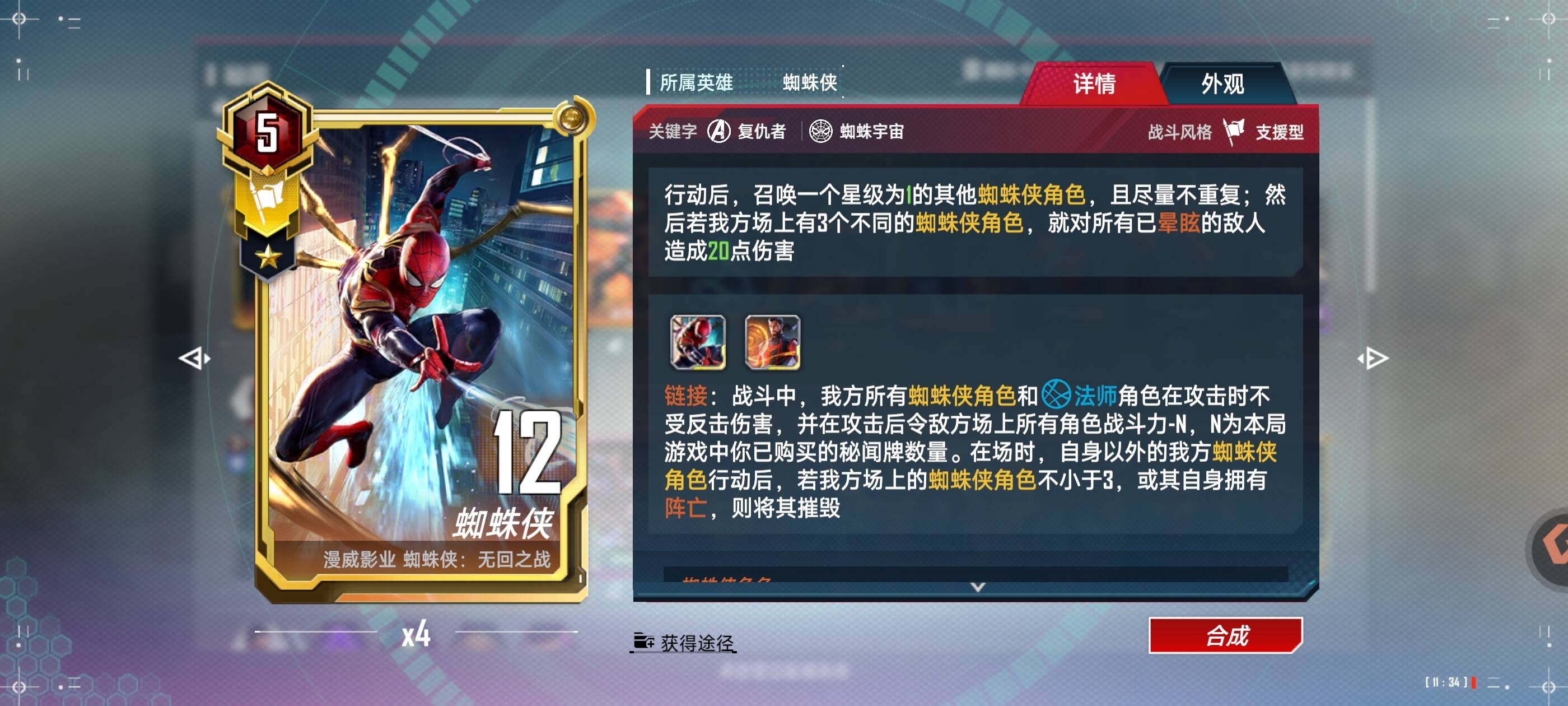 ⭐ 最终成型:蜘蛛侠+秘闻博士 +荷兰弟+4星阿戈摩托+4星奥姝图+灵活位(可以夜巡或者九头蛇角色携带致狂炸弹变形)