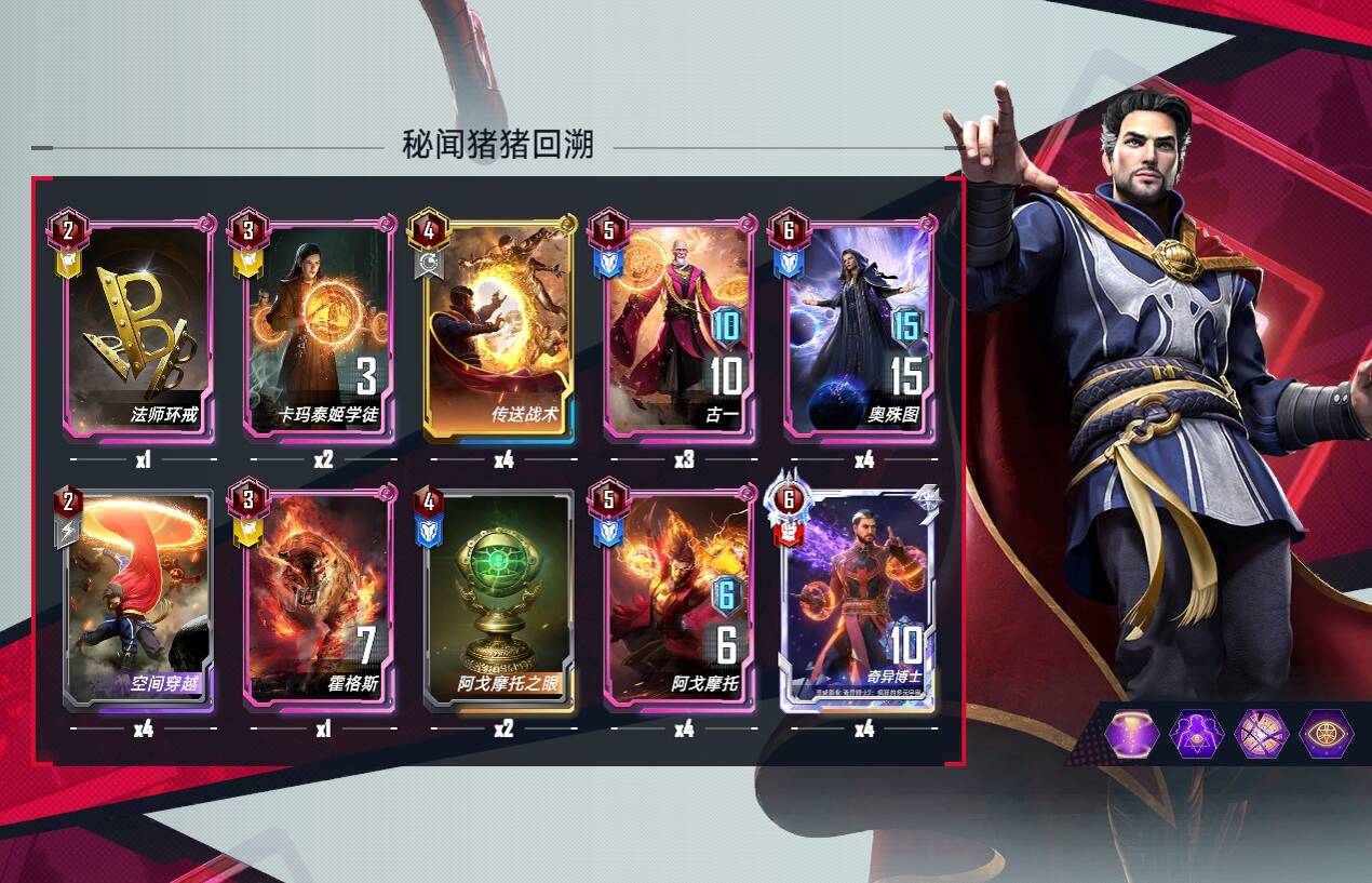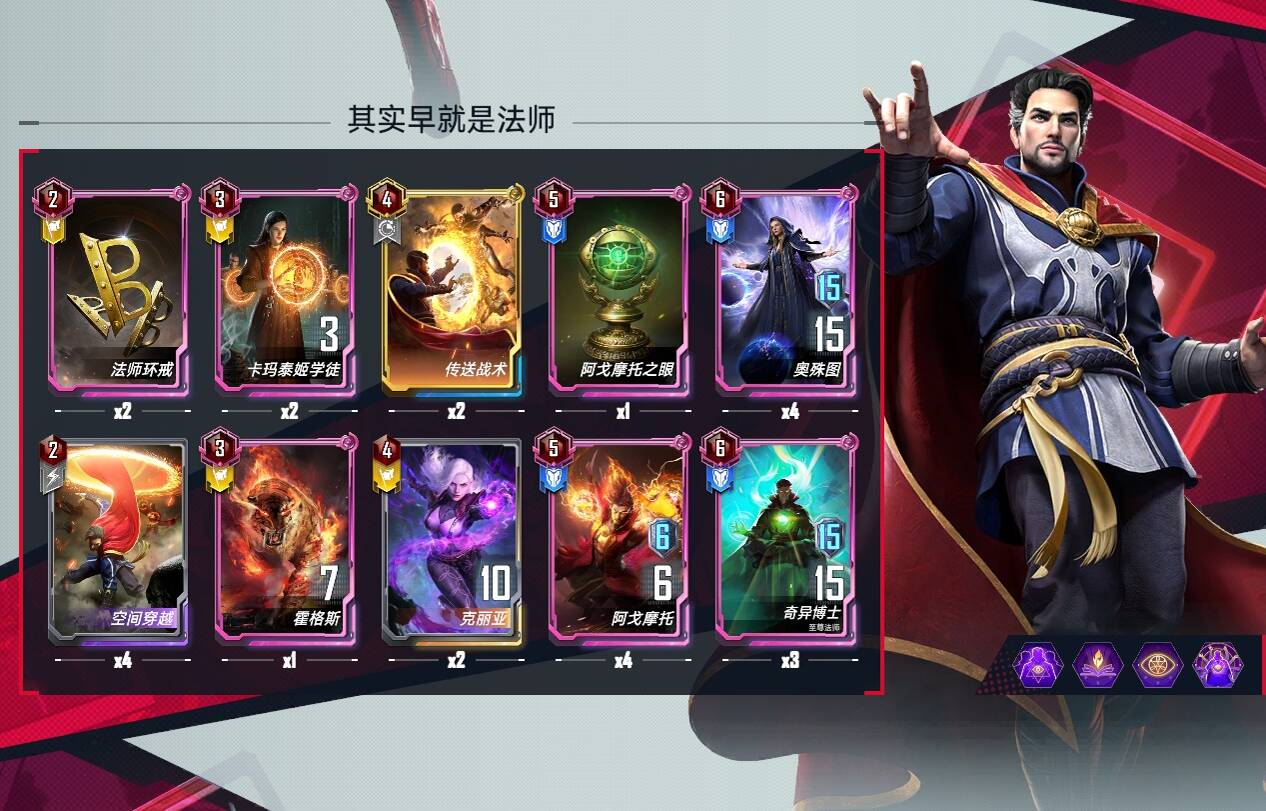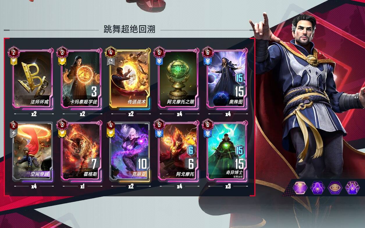 2:法师组件便宜在拿,优先拿奥姝图和至尊法师,眼睛可以不急拿,可以买几张传送战术,法师留在手里,场上托尼链接赚钱