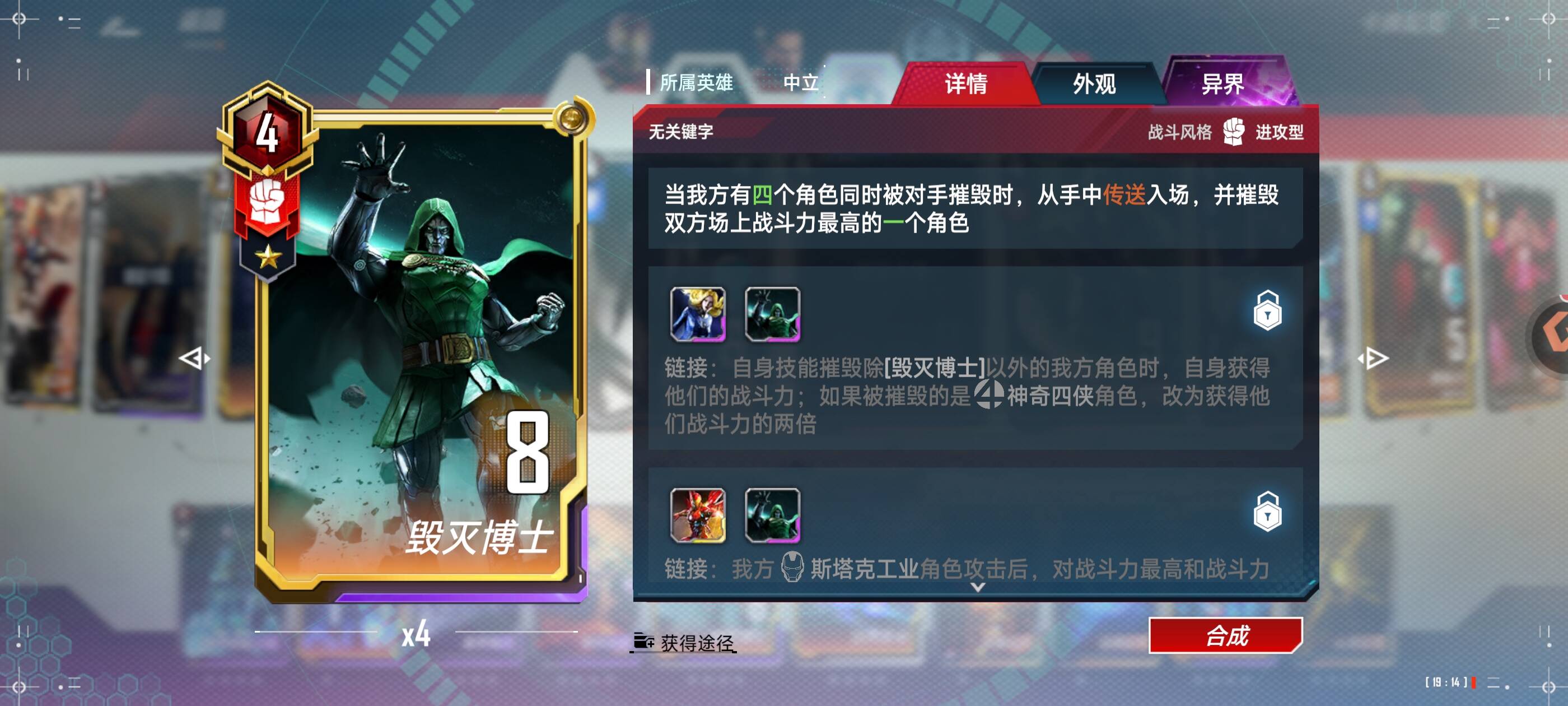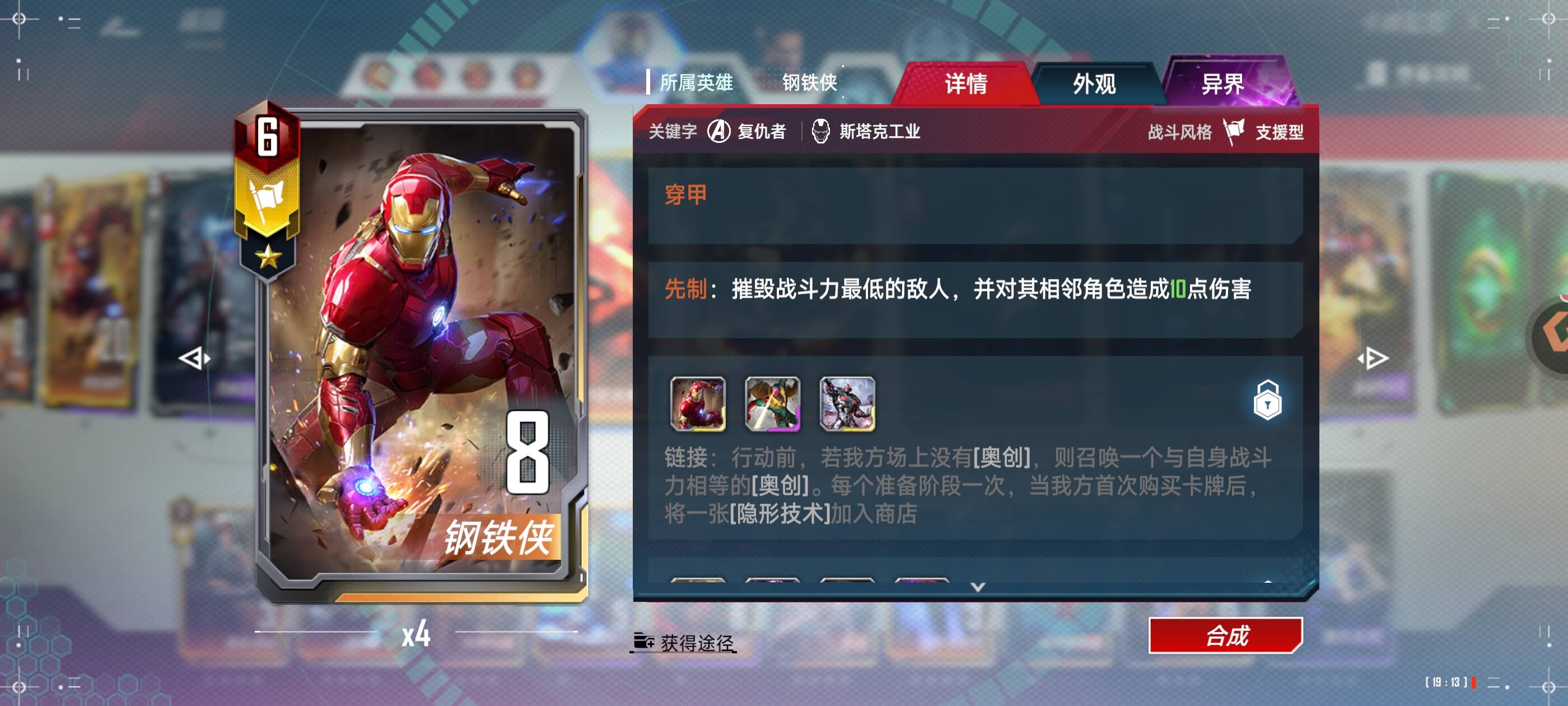 ⭐ 最终成型:2星钢铁侠+钢铁侠 +4星阿戈摩托+2星至尊法师+4星奥姝图+灵活位(可以夜巡或者九头蛇角色携带致狂炸弹变形)