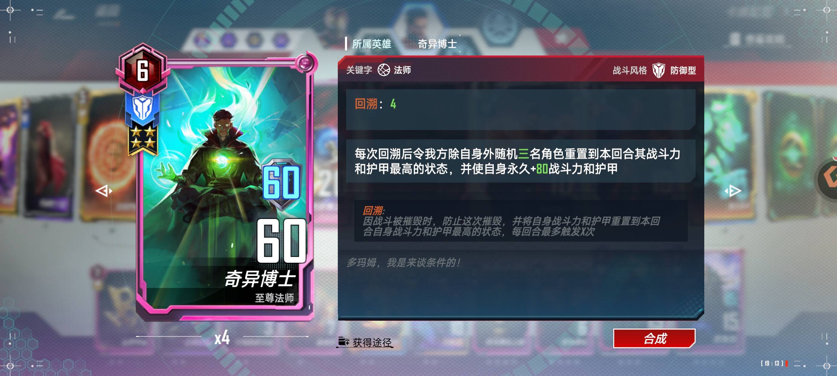 备注:成型后依靠多次回溯触发奥姝图和毁灭博士摧毁对方角色,如果对面小身材,记得卖了自己的毁灭博士防止内鬼,回溯目前数值其实在后期算不得很高,容易肉搏打不过人家,只能出此下策。