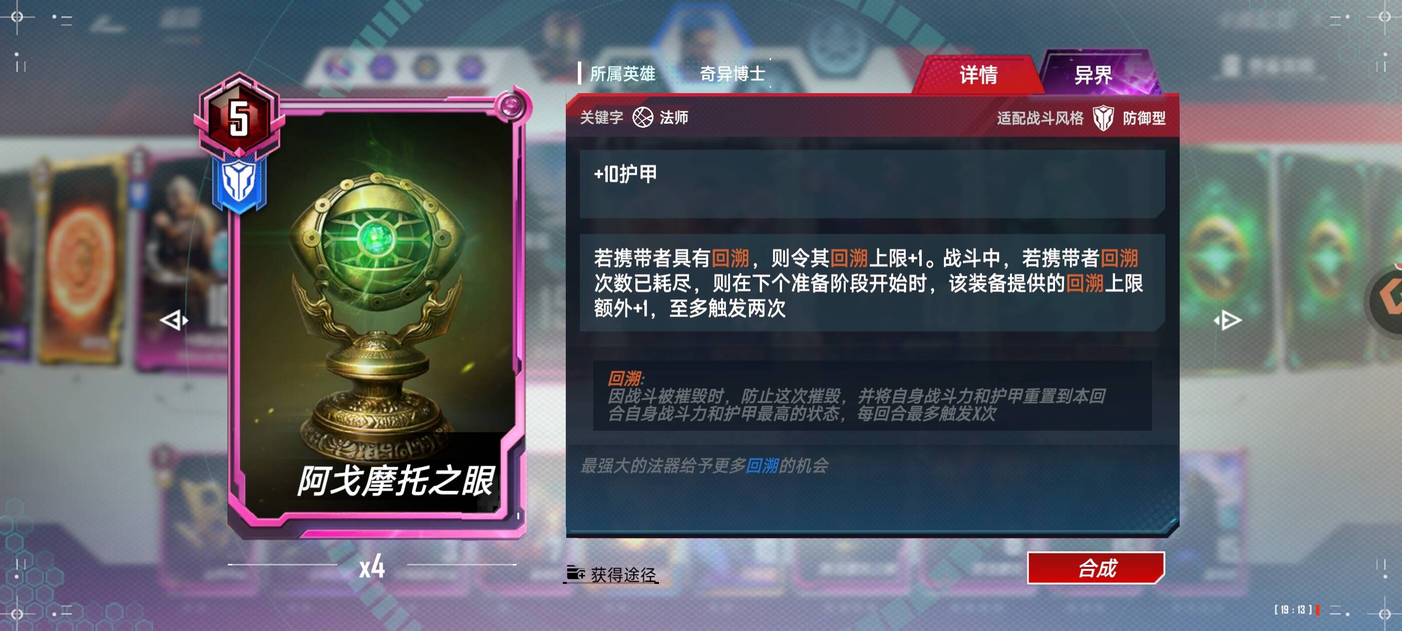 五费:异界阿戈摩托 和异界阿戈摩托 之眼,阿戈摩托多多益善,尽量四星,聊胜于无,异界眼睛增加多次回收次数,优先给奥姝图和至尊法师佩戴