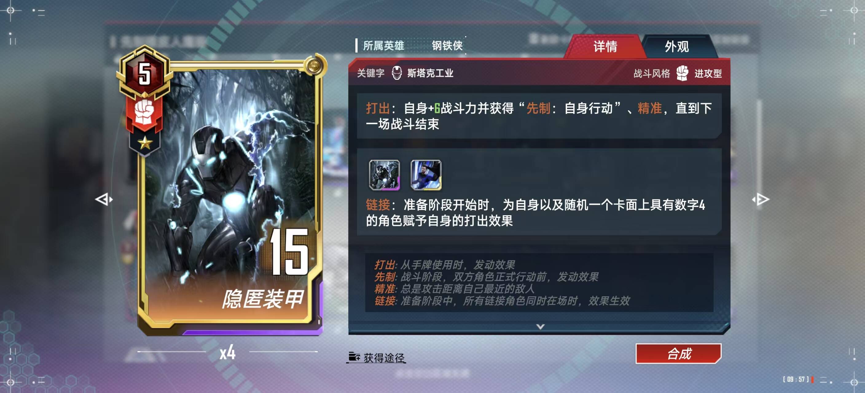 六费:隐形,策略卡;异界钢铁侠,场上有空了就刷一下卡,不重要