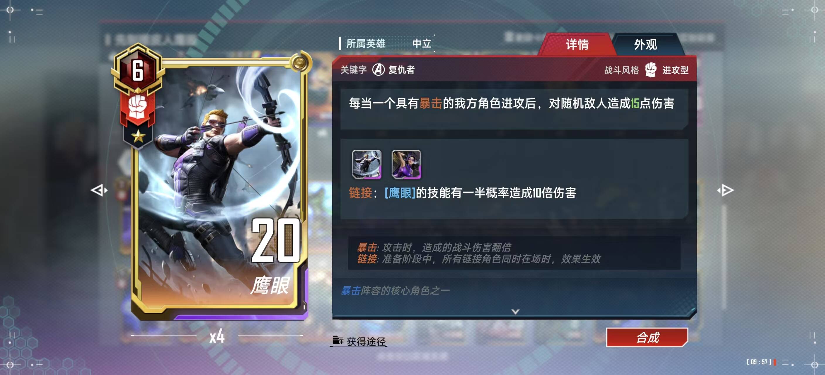 四费:鹰眼、橡皮人都是核心链接;这套唯二不好的就是没有回血和需要上6找男鹰眼,不像以前通过消退可以直接获取