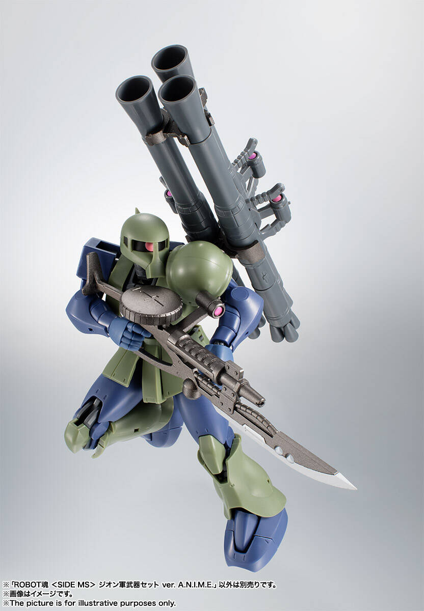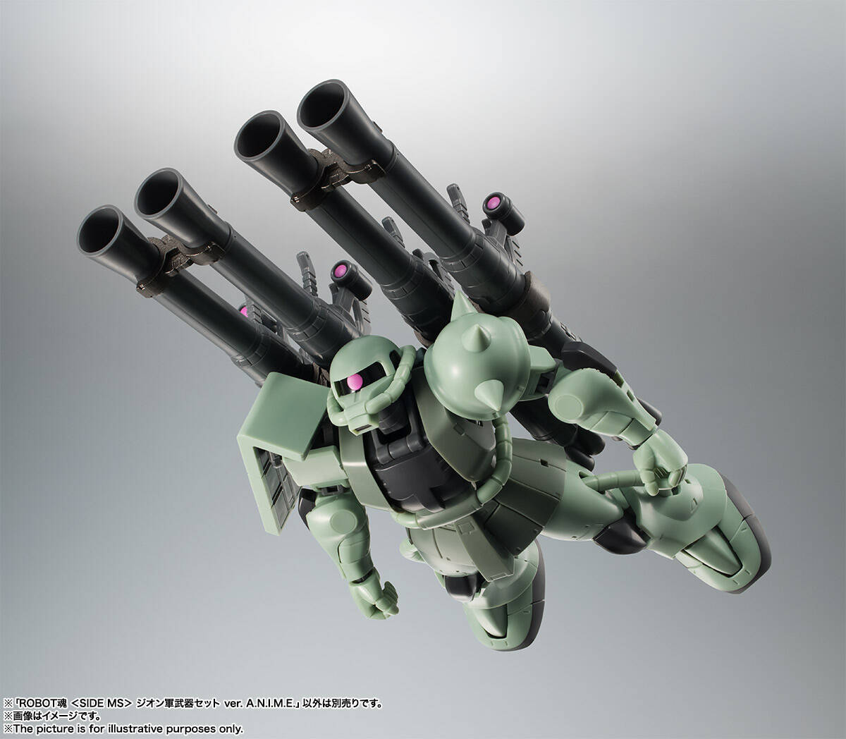 4種のバズーカジョイントにより「ROBOT魂 <SIDE MS> MS-06 量産型ザク ver. A.N.I.M.E.」(別売り)などに付属するザク・バズーカを複数装備、マウント可能。
