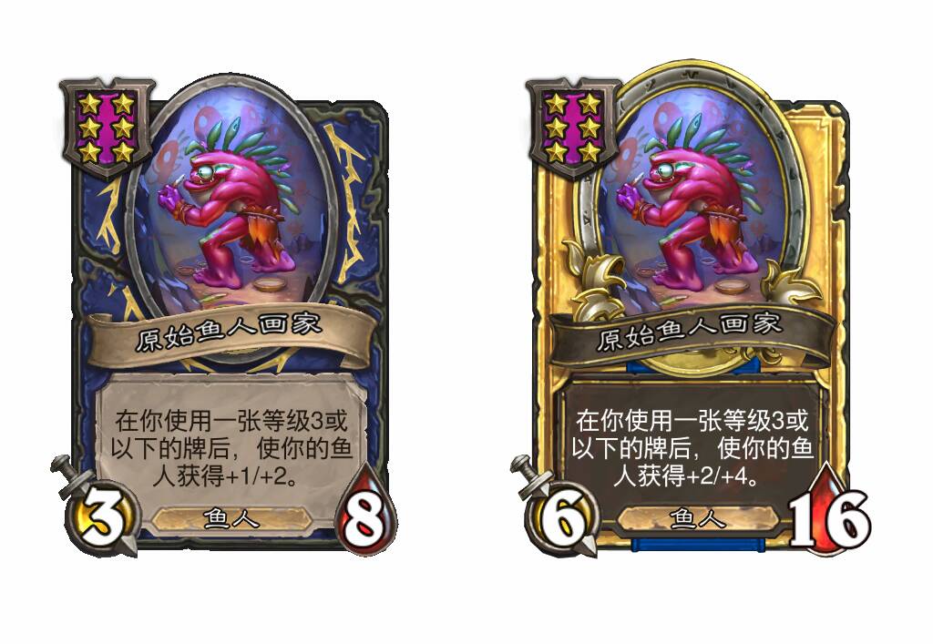 - [4星2费] 使一个随从获得+2/+2。使你的鱼人获得+2/+2。