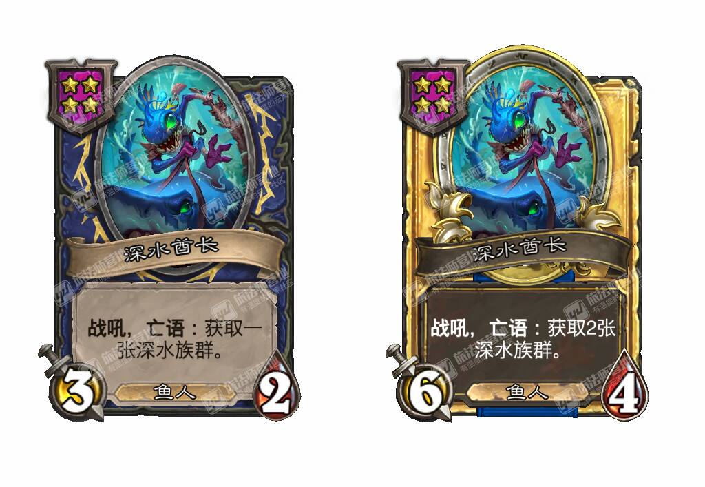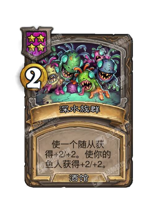 - [4星3/2鱼人] 战吼,亡语:获取一张深水族群。