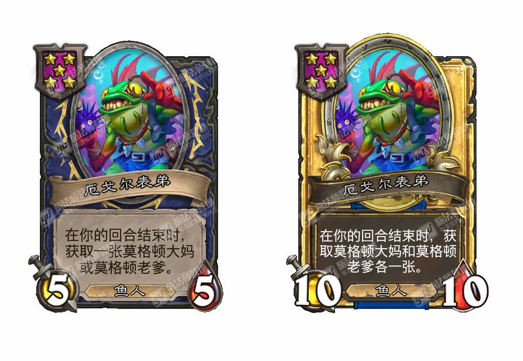 - [5星5/5鱼人] 在你的回合结束时,获取一张莫格顿大妈或莫格顿老爹。