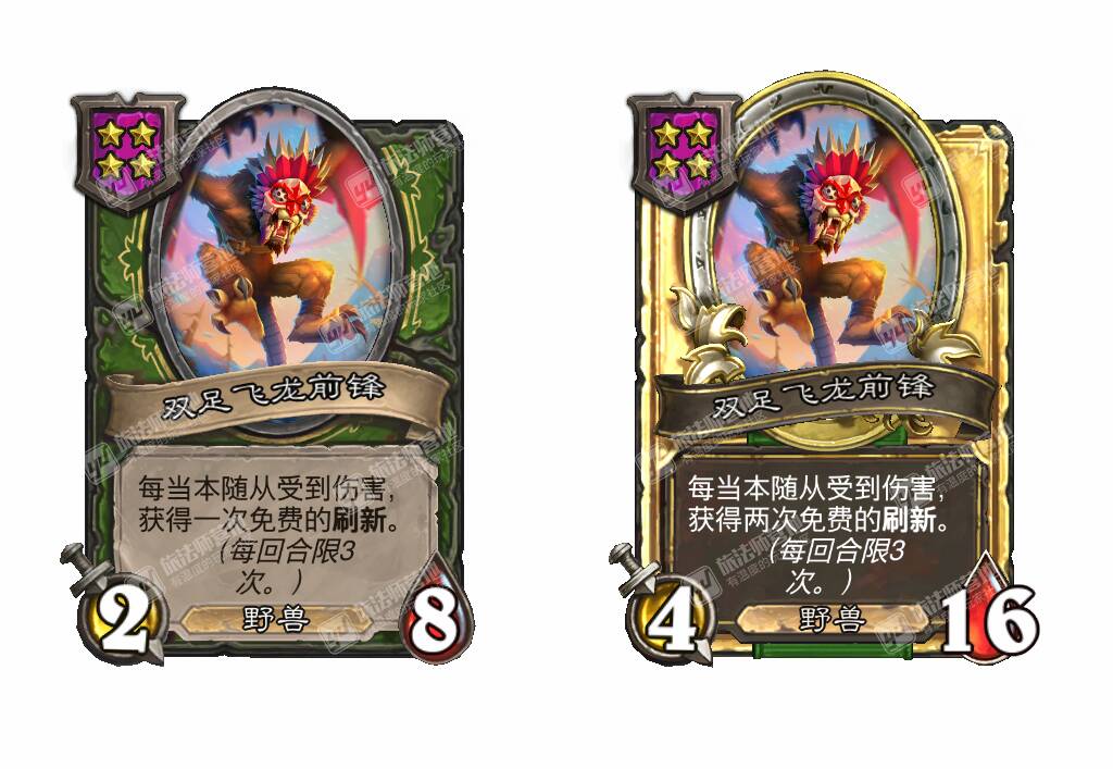 - [4星2/8野兽] 每当本随从受到伤害,获得一次免费的刷新。(每回合限3次。)