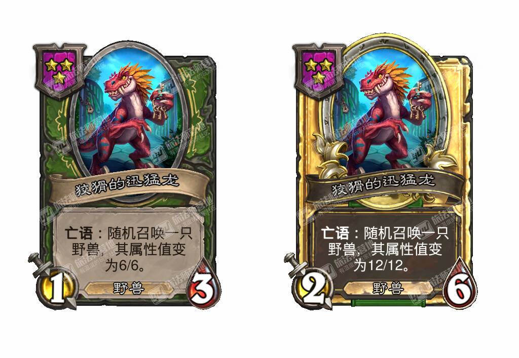 - 新:[3星1/3] 亡语:随机召唤一只野兽,其属性值变为6/6。