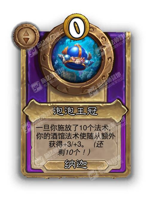 - [纳迦0费小型] 一旦你施放了10个法术,你的酒馆法术使随从额外获得+3/+{3}。(还剩10个!)