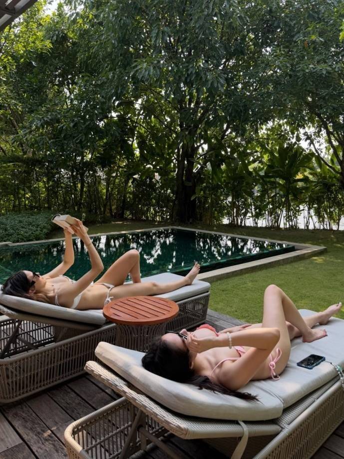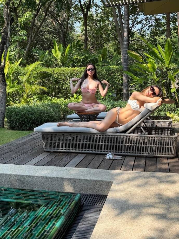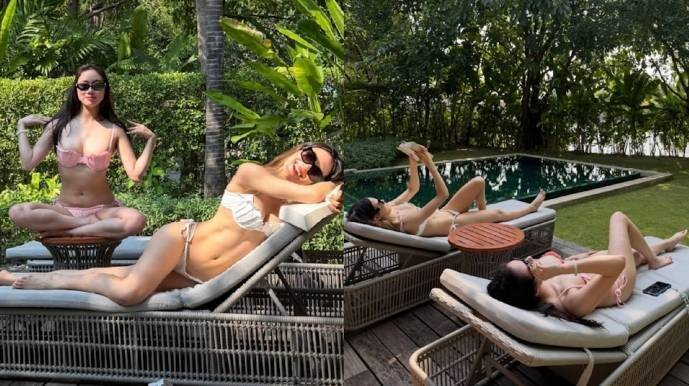 近日谷爱凌在网上分享了她的旅游美照,从照片中可见谷爱凌身处一个有山有水的地方。与她结伴同游的还有她的好闺密何超欣,两人一起享受日光浴。她俩还身穿性感比基尼,大秀健康诱人的身材。并一起去按摩做火疗等疗程,骑单车,游水等,尽情吃喝玩乐。