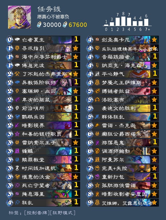 很难找到改的东西了。卡组本质围绕麦迪文的胜利和游荡恶鬼展开打控制。本质等58,任务本质追踪术。和宇暗比没有宇暗打2稳定构筑也是特化但是能带棍哥胜利和打包等优质解。