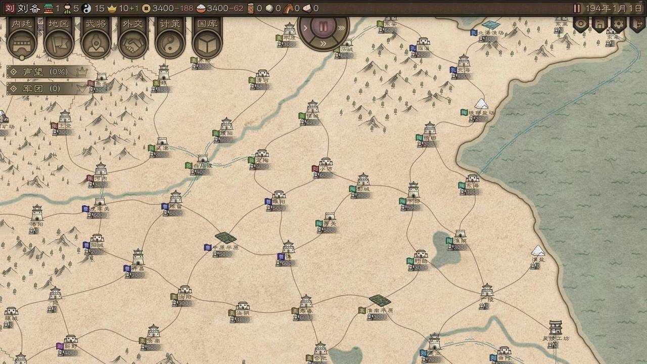 在历史上东汉105个郡国的基础上,游戏还设计了各大资源点,比如陶谦的琅琊盐场、孔融的北海渔场以及中原、淮南、河北的平原产粮区。通过控制这些关键资源产区,各个势力将在经济上获得极大增益,来还原历史中为何各大势力都急于攻占荆州、徐州这样的鱼米之乡。