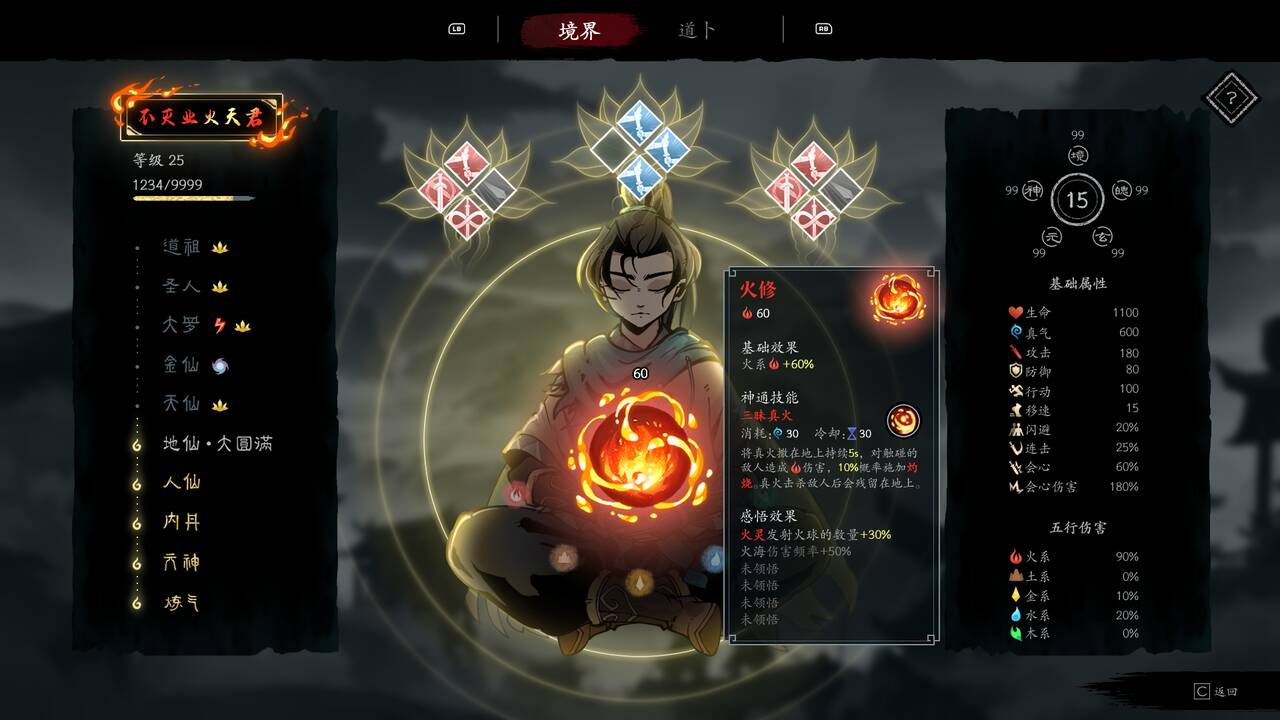 以测试版本开放的火、金两种属性为例,玩家既可以专注单一属性,追求更直接的爆发收益,也可以尝试双属性并修,借由不同搭配解锁新的能力路线。本次测试暂未开放神通技能,因此现阶段玩家更能感受到的,主要还是五行成长与词条联动所带来的构筑变化。