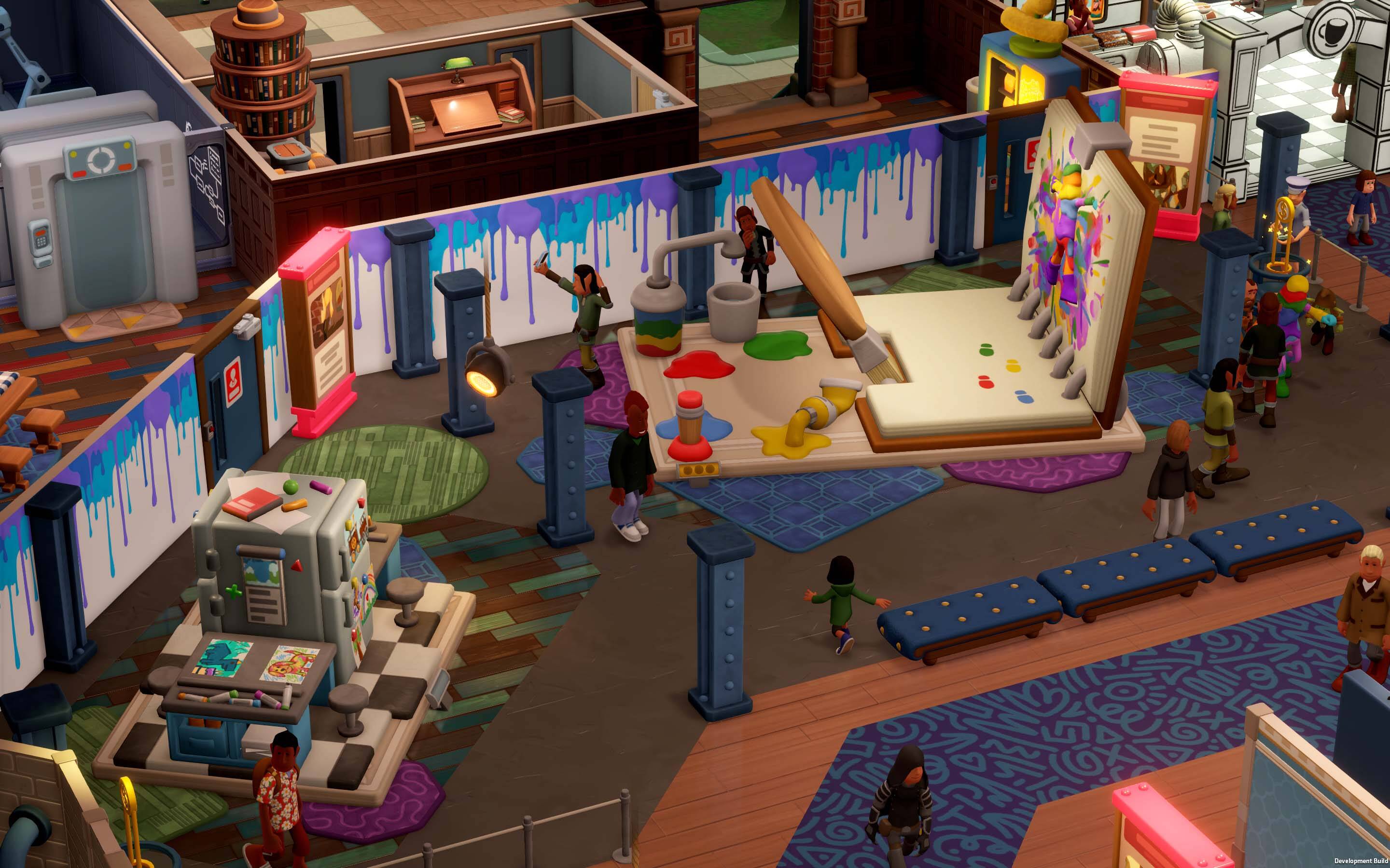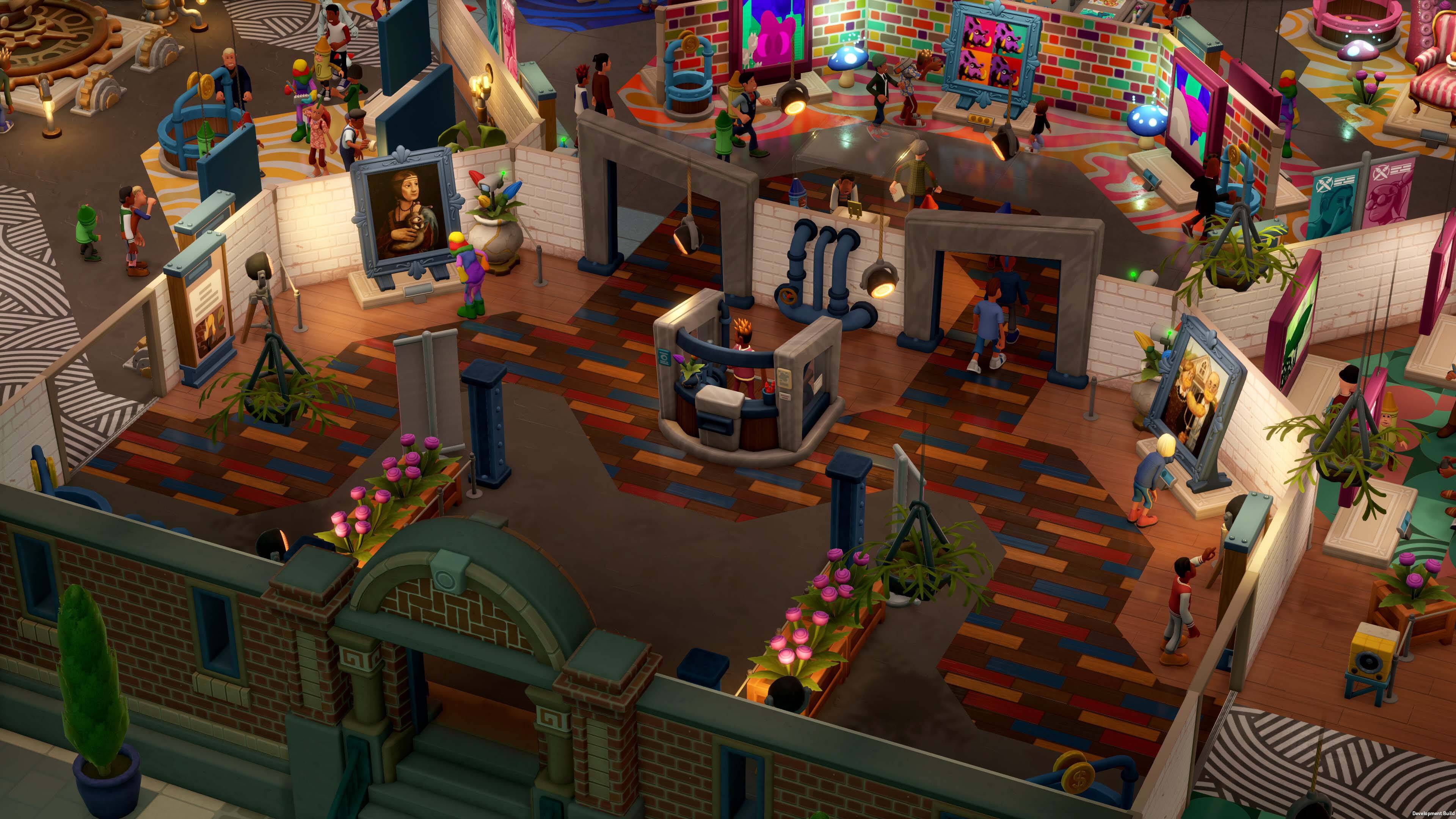 在新DLC中,博物馆馆长可以在双点县收集艺术作品,并通过举办艺术展览来展现自己的创意才华。馆长还可以使用“双点哥特”、等双点县大师们的名作来装饰自己的画廊。