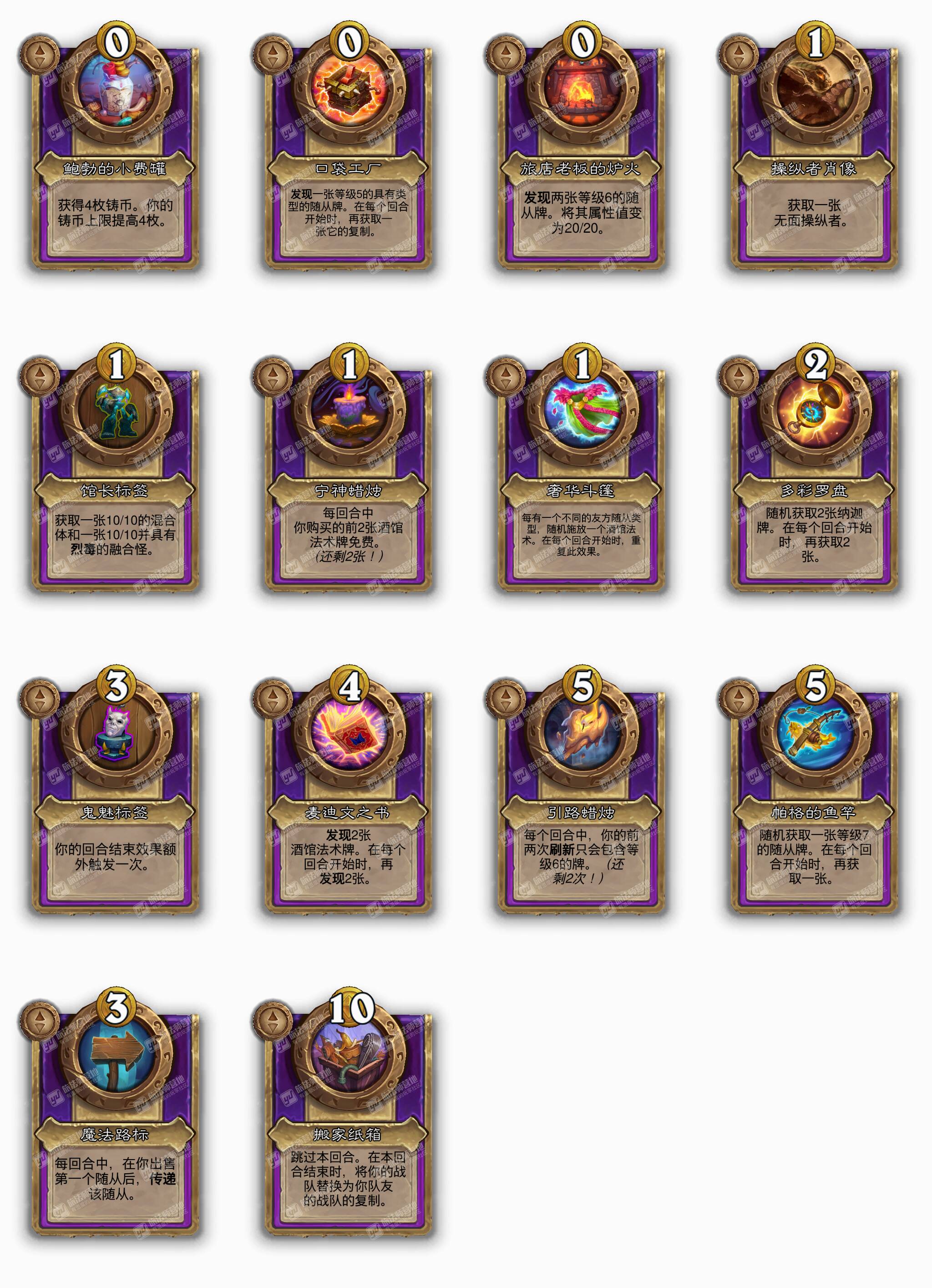 - [中立6费小型] 获取等级1,2和3的随从牌各两张。