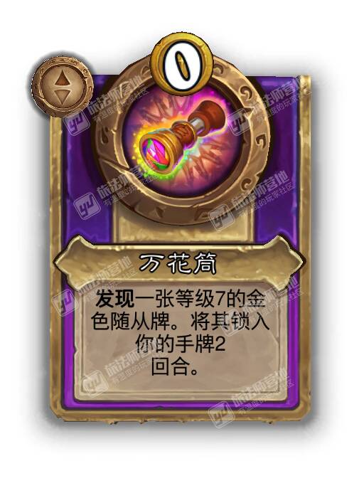 - [中立0费大型] 发现一张等级7的金色随从牌。将其锁入你的手牌2回合。