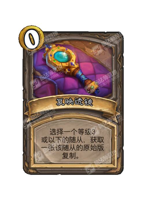 - 复映透镜:选择一个等级3或以下的随从,获取一张该随从的原始版复制。