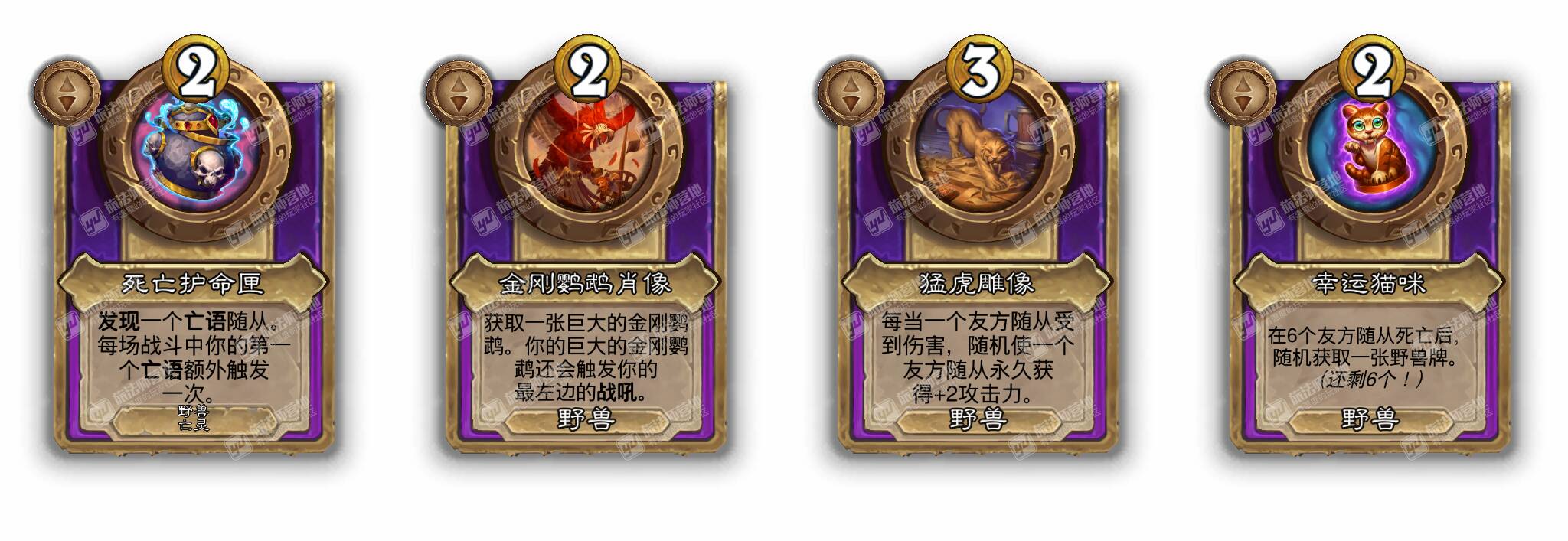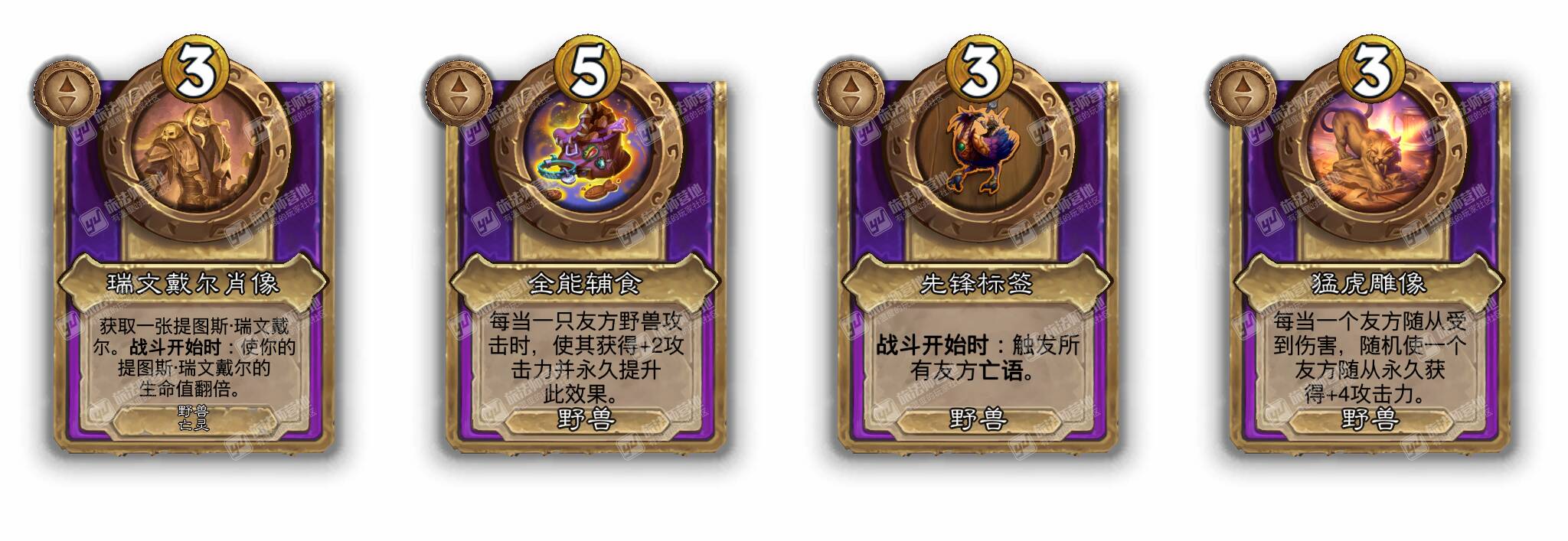 - 新:[1费] 在战斗中,在你召唤一只野兽后,使其攻击力翻倍。