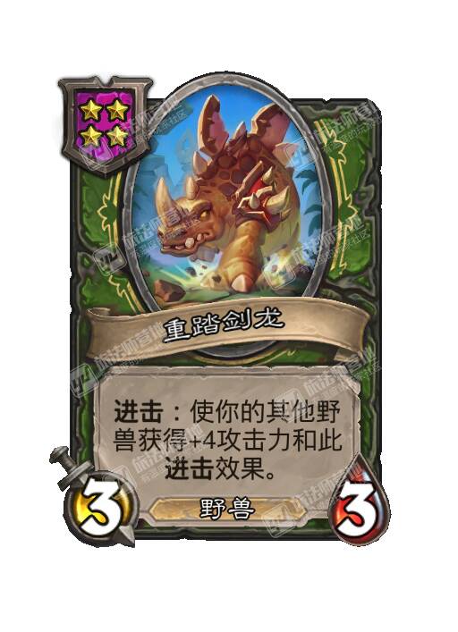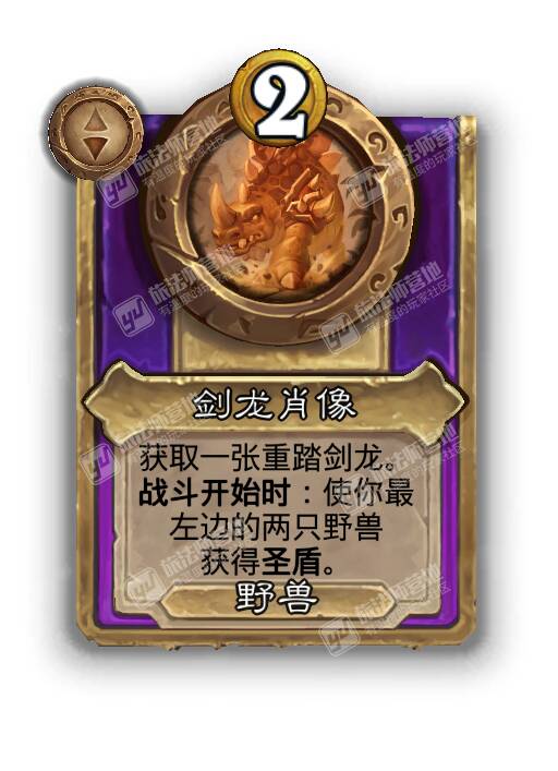 - [野兽2费小型] 获取一张重踏剑龙。战斗开始时:使你最左边的两只野兽获得圣盾。