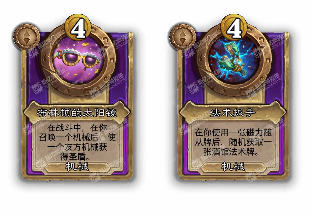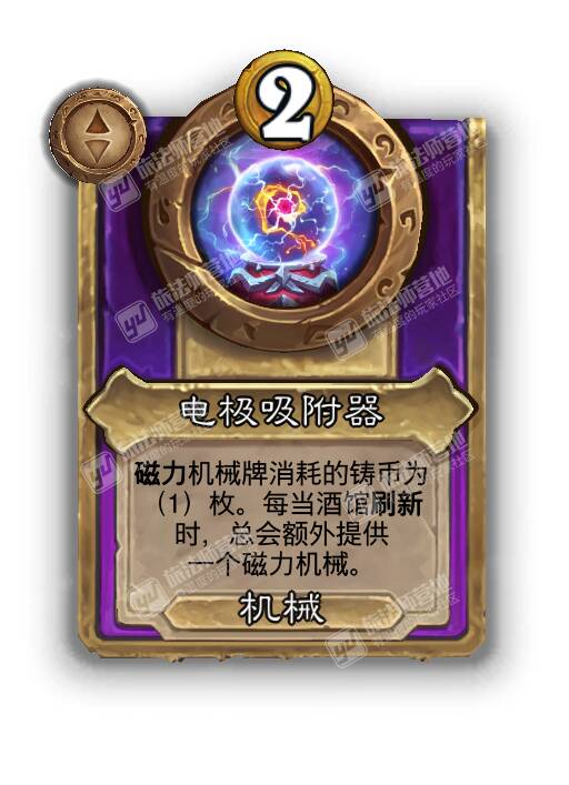 - [机械2费大型] 磁力机械牌消耗的铸币为(1)枚。每当酒馆刷新时,总会额外提供一个磁力机械。