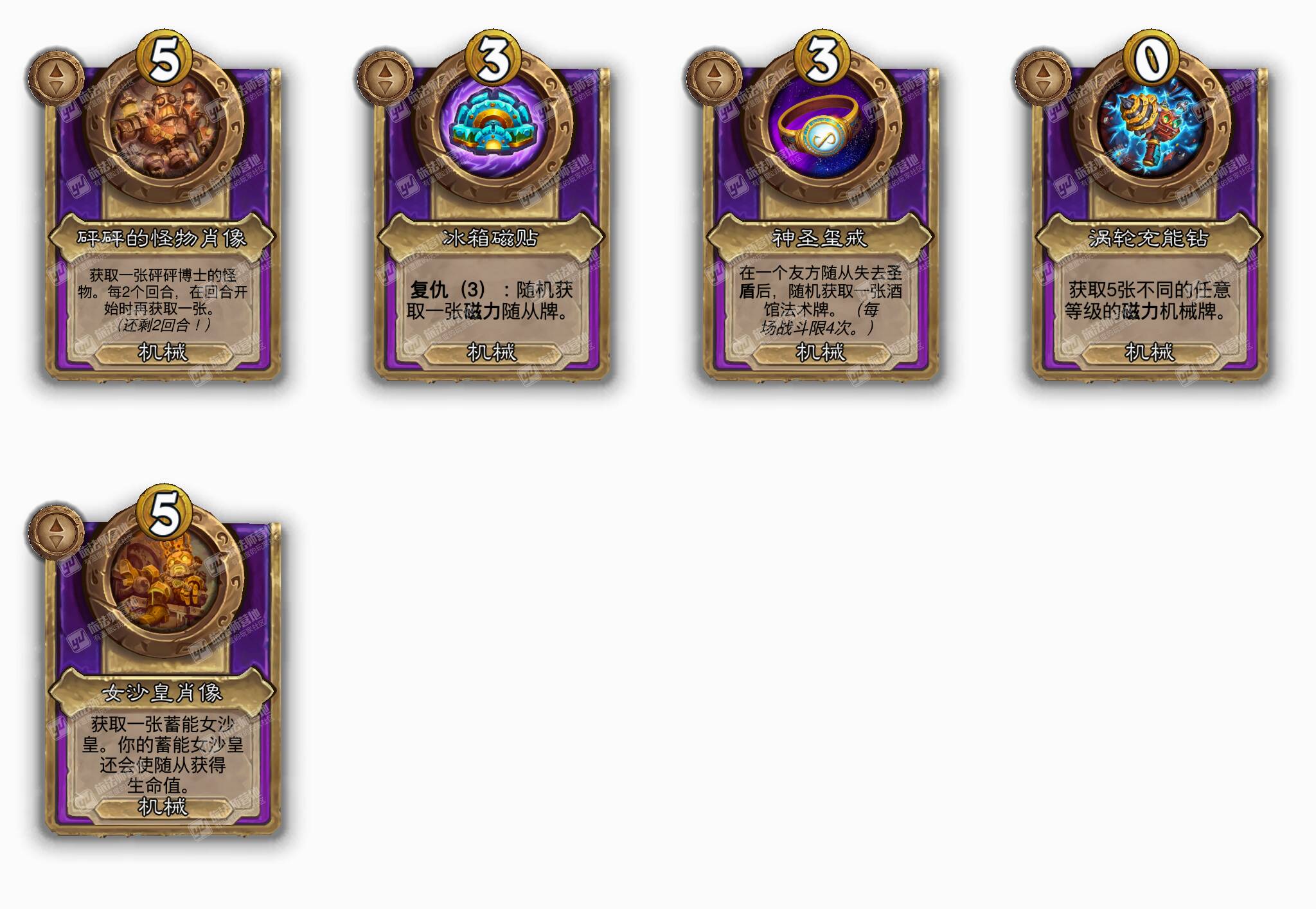 - [机械2费小型] 在7个友方随从死亡后随机获取一张机械牌。