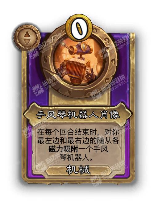 - [机械0费大型] 在每个回合结束时,对你最左边和最右边的随从各磁力吸附一个手风琴机器人。