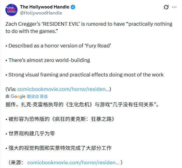 最新消息称导演Zach Cregger这次搞的是一次重启,表面上说是《生化危机》的世界观里讲新故事,但根据内部试映的反馈,这片子跟游戏本身关系非常弱——除了丢点彩蛋、放几只经典怪物出来“刷存在感”,基本没啥实质联系。这让《生化危机》的铁杆粉丝们感到担忧。