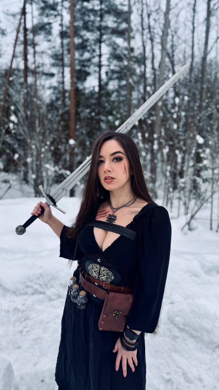 国外美女主播Cos《红色沙漠》美图 双手持剑英姿飒爽