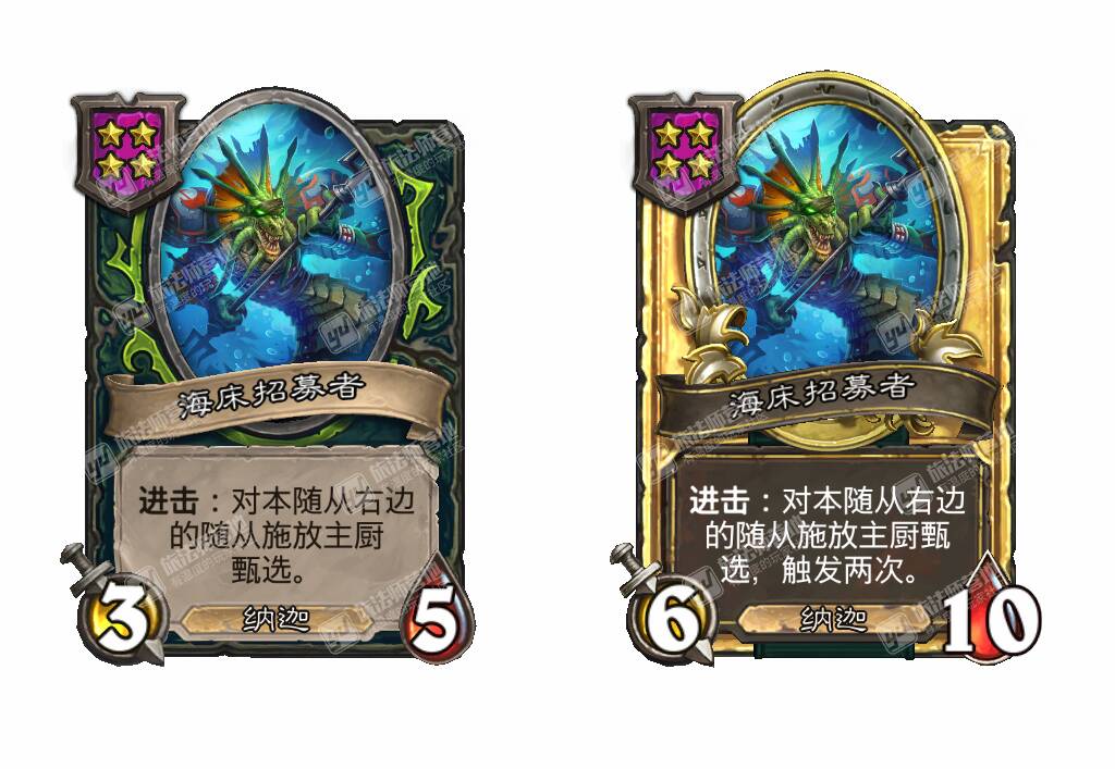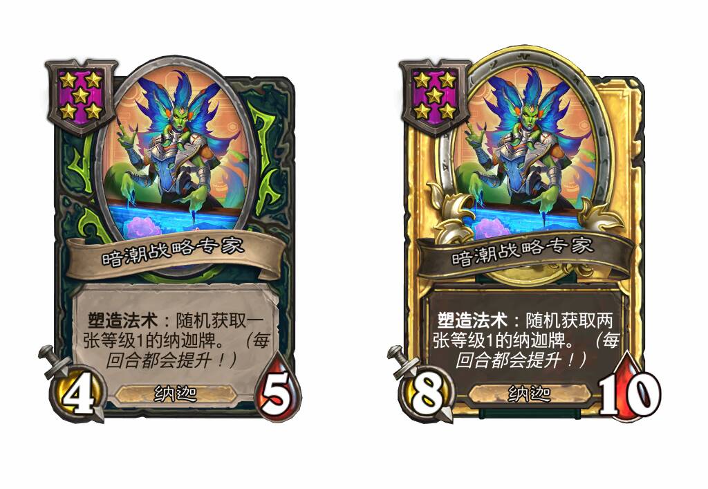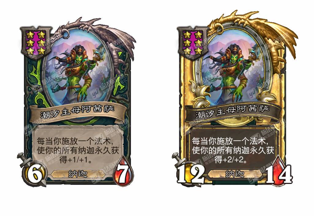 - 新:[1费] 使一个随从获得+1/+1,触发两次。如果该随从是纳迦,重复此效果。