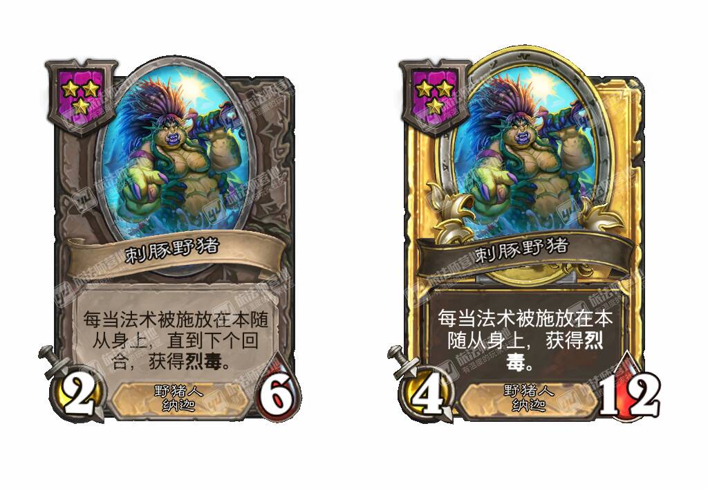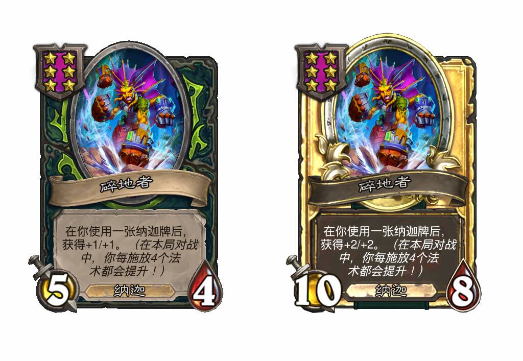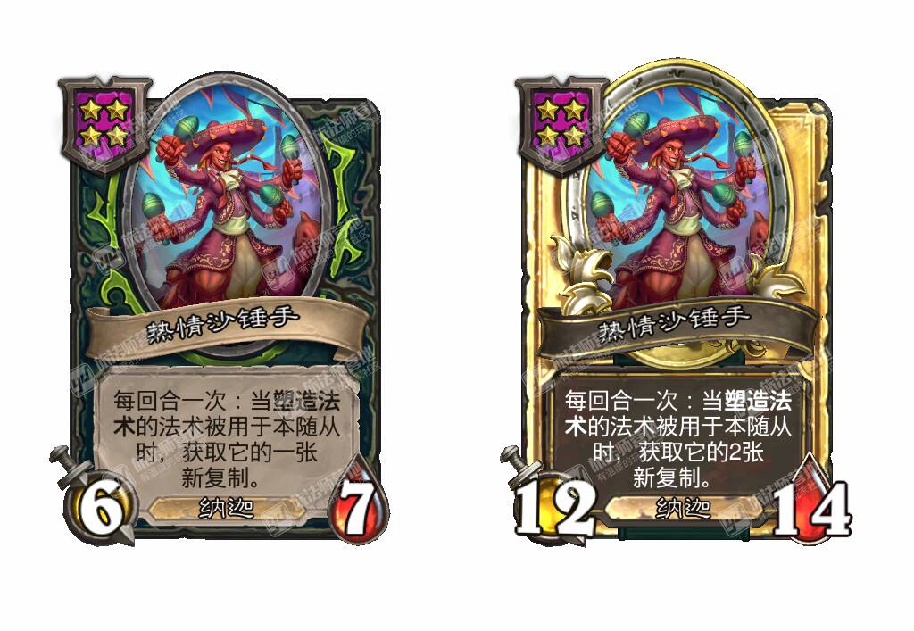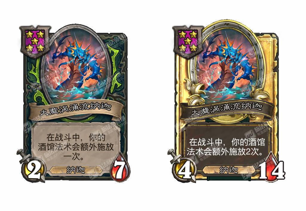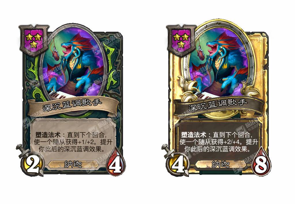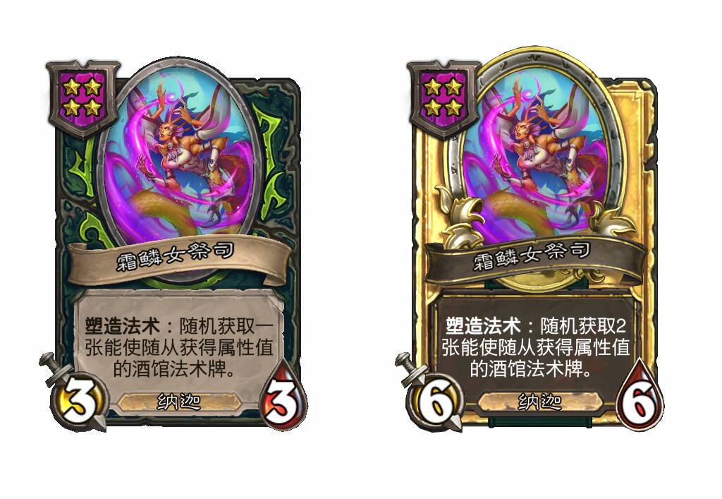 - 旧:[2费] 使一个随从获得+2/+2,触发两次。如果该随从是纳迦,重复此效果。