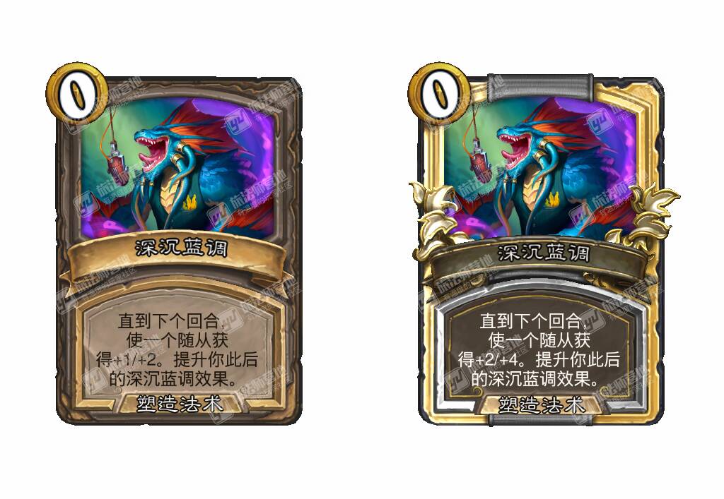 - 新:[3星2/4] 塑造法术:直到下个回合,使一个随从获得+1/+2。提升你此后的深沉蓝调效果。