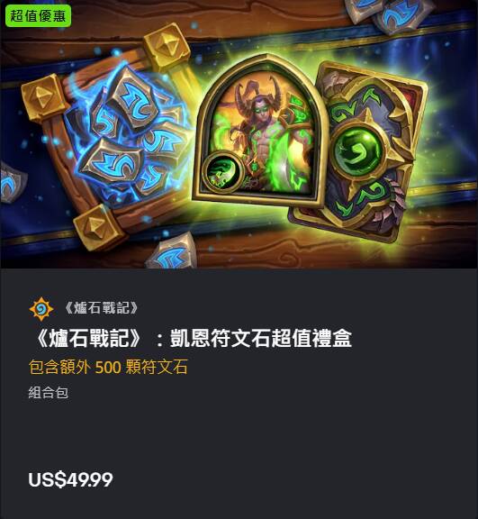 (外服)含5500符文石,构筑模式恶魔猎手新皮肤“凯恩·日怒”及其配套卡背,售价49.99美元。