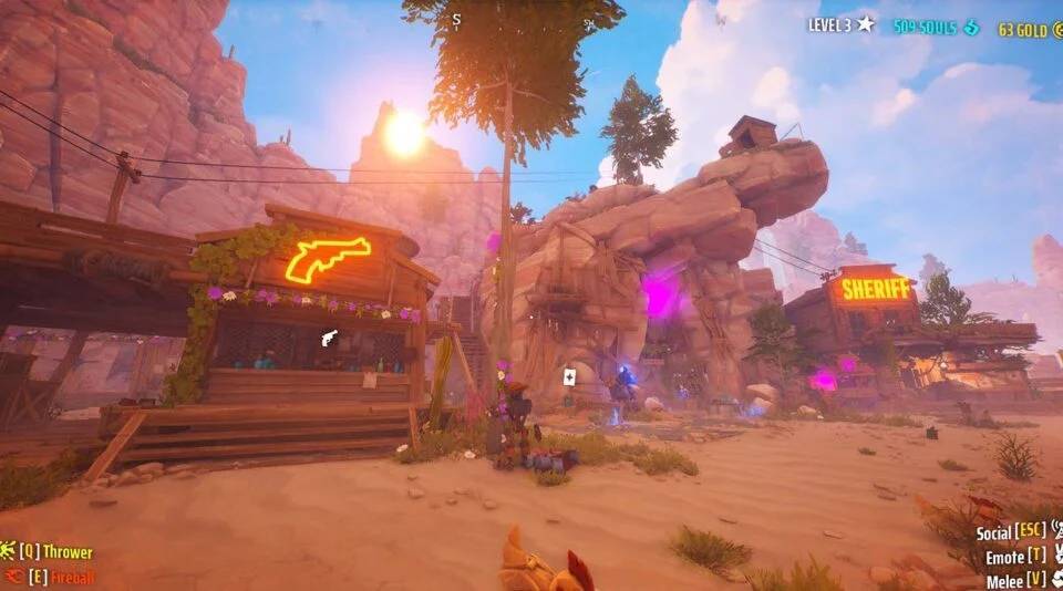 你以为回到营地小镇就OK了吗?根本消停不了,在酒馆里,你可以和队友几个人像西部片一样互相抡拳,当个真正的牛仔,打完架又勾肩搭背去武器店升级装备、到法术台解锁新技能、跑马厩给机械马换套拉风皮肤,清点完赏金战利品,然后嘴上说着“最后一把最后一把”就又出发了。